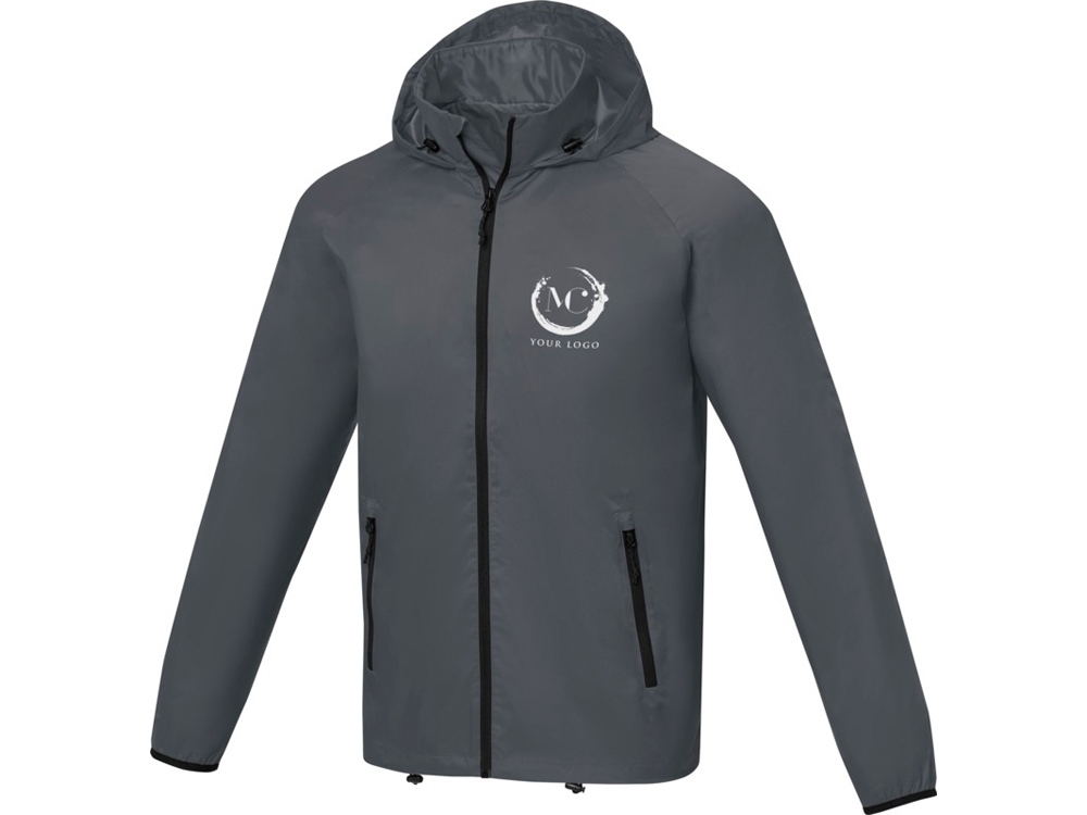 Dinlas Мужская легкая куртка. Возможность нанесения на внутреннюю часть фирменной символики. Для большего комфорта основной ярлык можно оторвать или отрезать. Водонепроницаемость 500 мм. Рукав реглан. Капюшон, который можно свернуть. Обратная застежка-молния по центру. Передние карманы с застежкой-молнией. Внутренний карман. Регулируемый шнурок внизу подола и капюшоне.