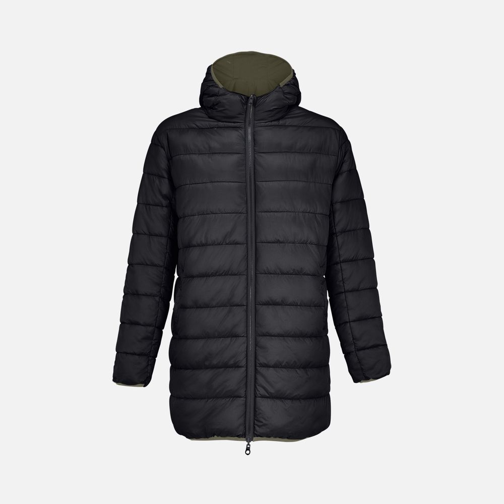 Двусторонняя утепленная парка с капюшоном. Одна сторона гладкая с водоотталкивающим покрытием, другая — стеганая. Стильная, удобная и функциональная, эта парка станет идеальным решением как для подарка, так и для повседневного использования.