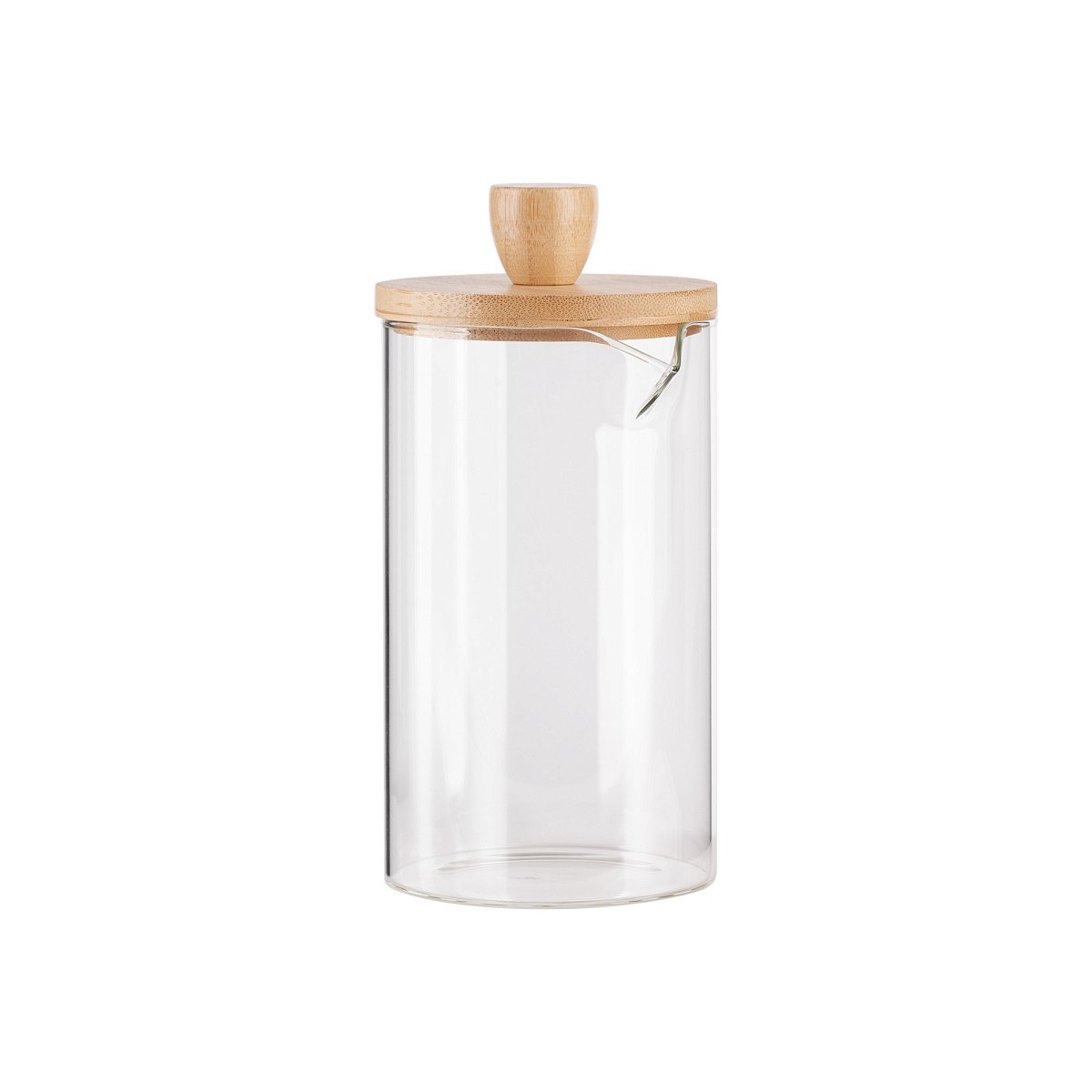 Кувшин 600 мл из боросиликатного стекла с бамбуковой крышкой. Подойдет для воды, декора, хранения непищевой продукции.