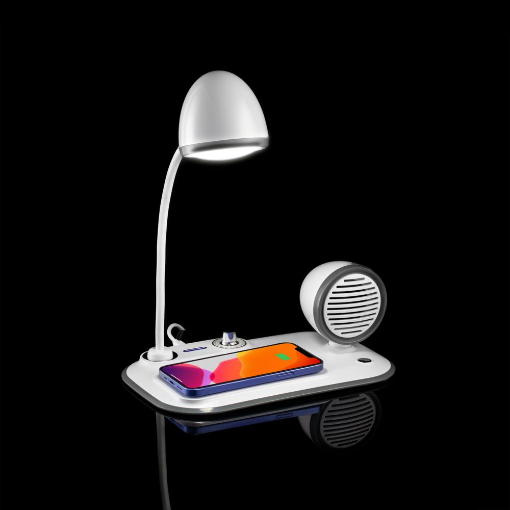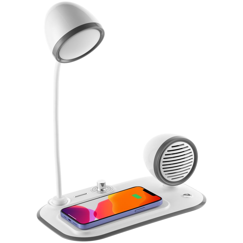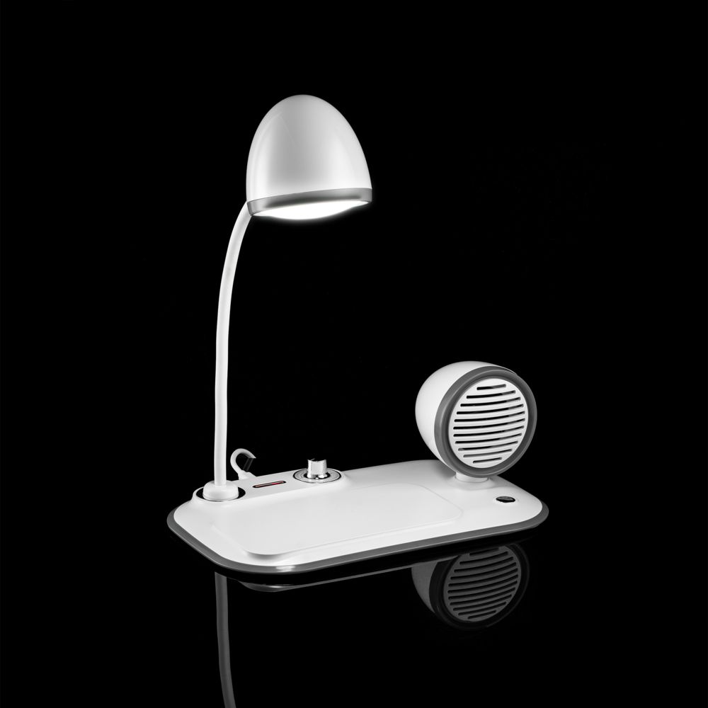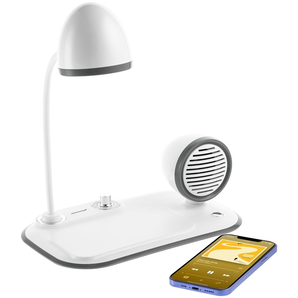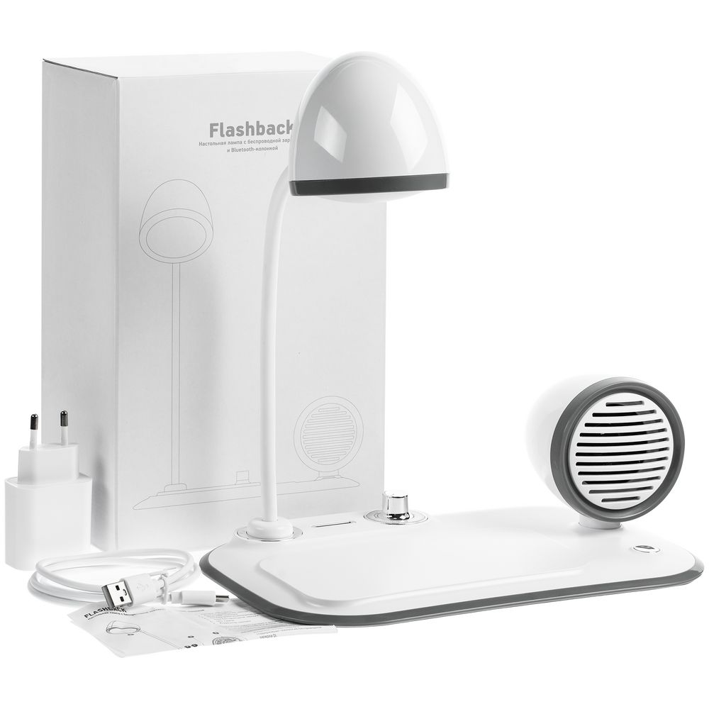 Лампа с колонкой и беспроводной зарядкой Flashback, белая можно заказать в нашей компании по самой доступной цене от 3 999 рублей.