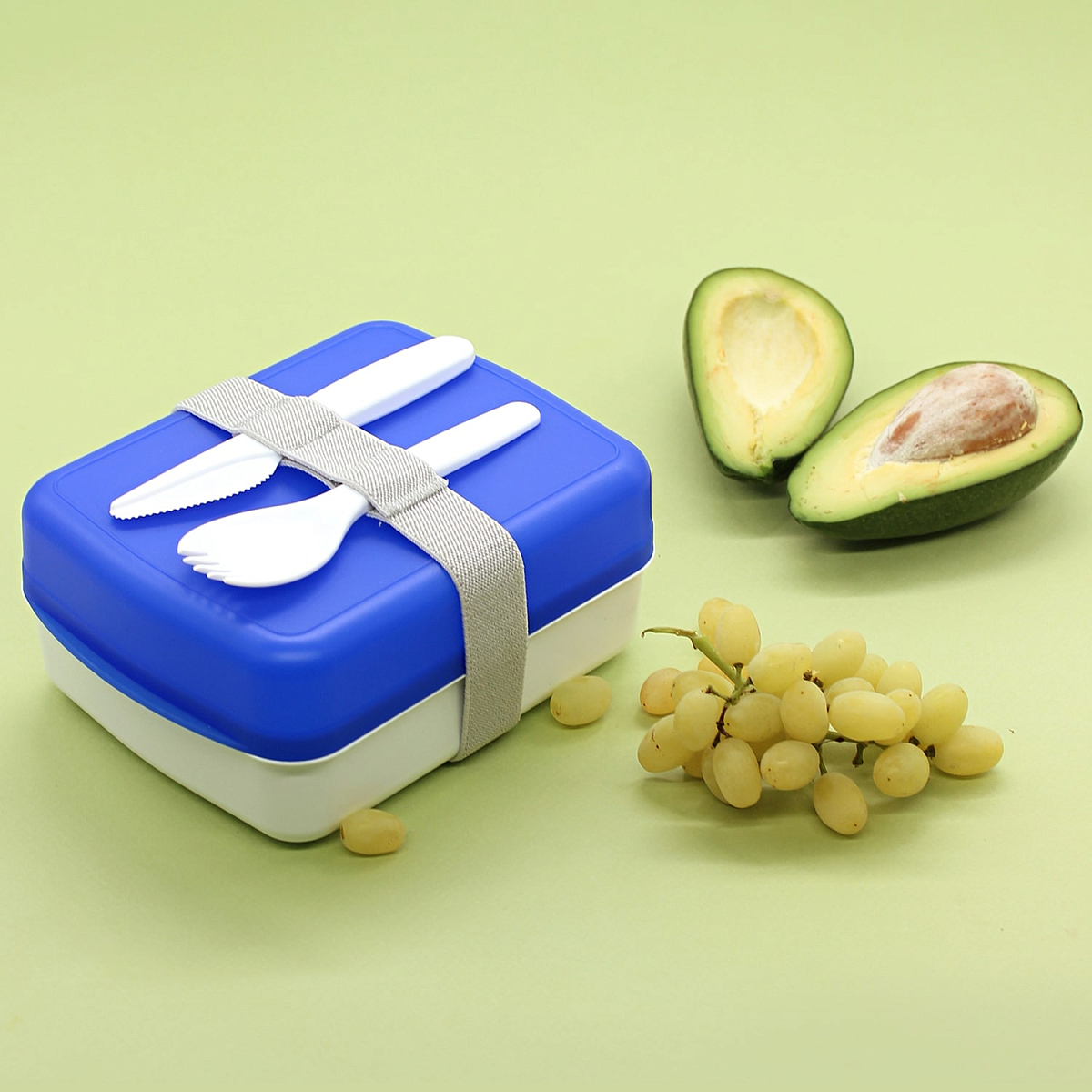 Компактный и практичный ланч-бокс для сэндвичей и вторых блюд, отлично сохраняет свежесть и вкус любимой еды. Контейнер удобно брать с собой на работу, учебу или в путешествие. В комплекте столовые приборы, которые крепятся с помощью эластичного ремня. Ланч-бокс произведен из переработанного пластика и не содержит вредных веществ. Поставляется без индивидуальной упаковки.