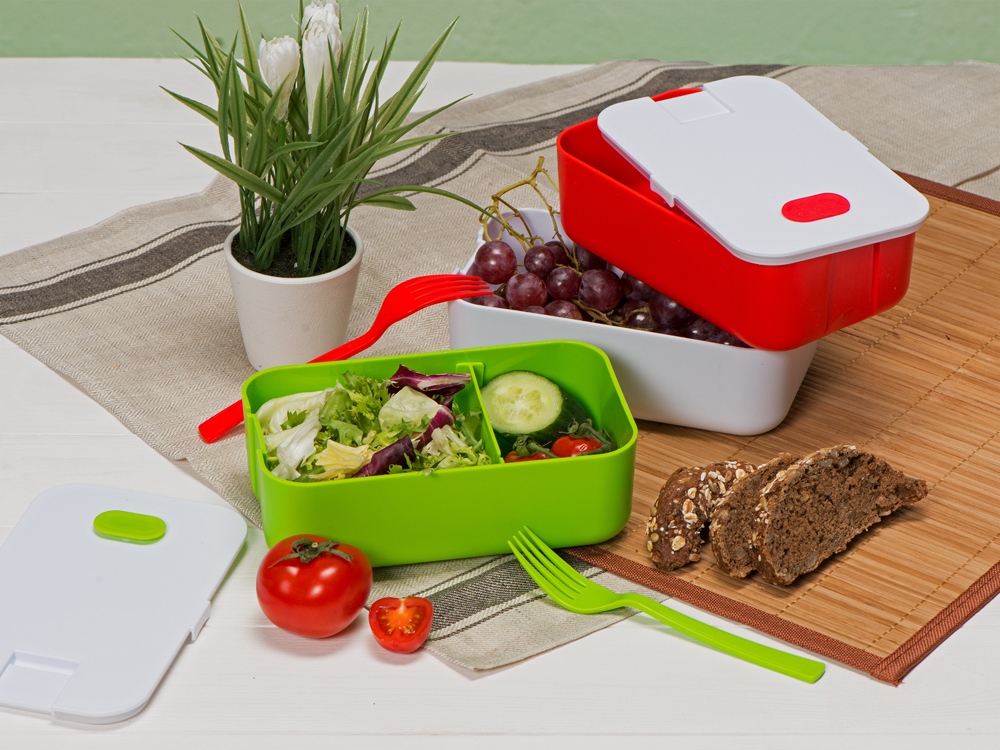 Ланч-бокс Neo можно брать с собой на работу, в школу, университет и командировки. Внутри прочной пластиковой емкости находятся снимаемая перегородка и вилка. Крышка с клапаном препятствует выпадению продуктов из бокса. Чтобы облегчить открытие контейнера, сначала выпустите воздух из него, потянув за силиконовый клапан на крышке. Деталь для фиксации крышки контейнера выполняет дополнительную функцию подставки для телефона, что особенно понравится тем, кто привык смотреть видео или читать книги во время перекуса. Ланч-бокс Neo можно разогревать в микроволновой печи, предварительно сняв крышку контейнера. Также разрешается использовать в посудомоечной машине и морозильной камере.
