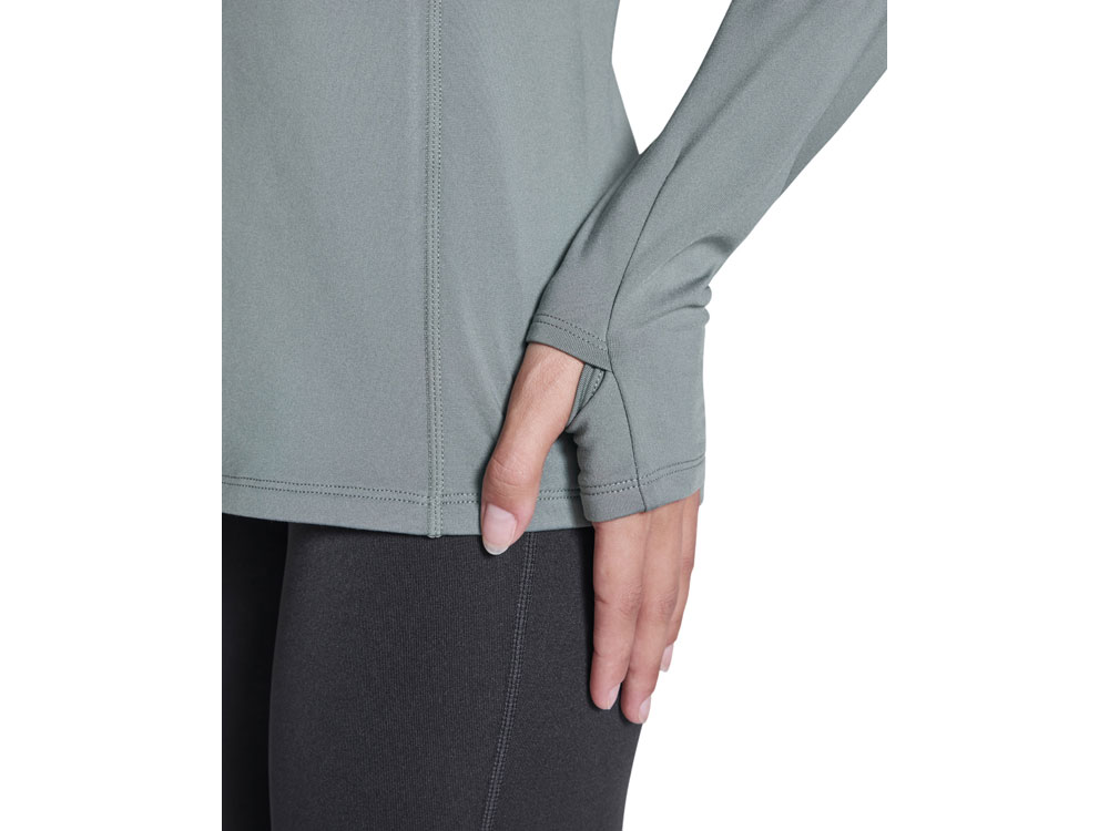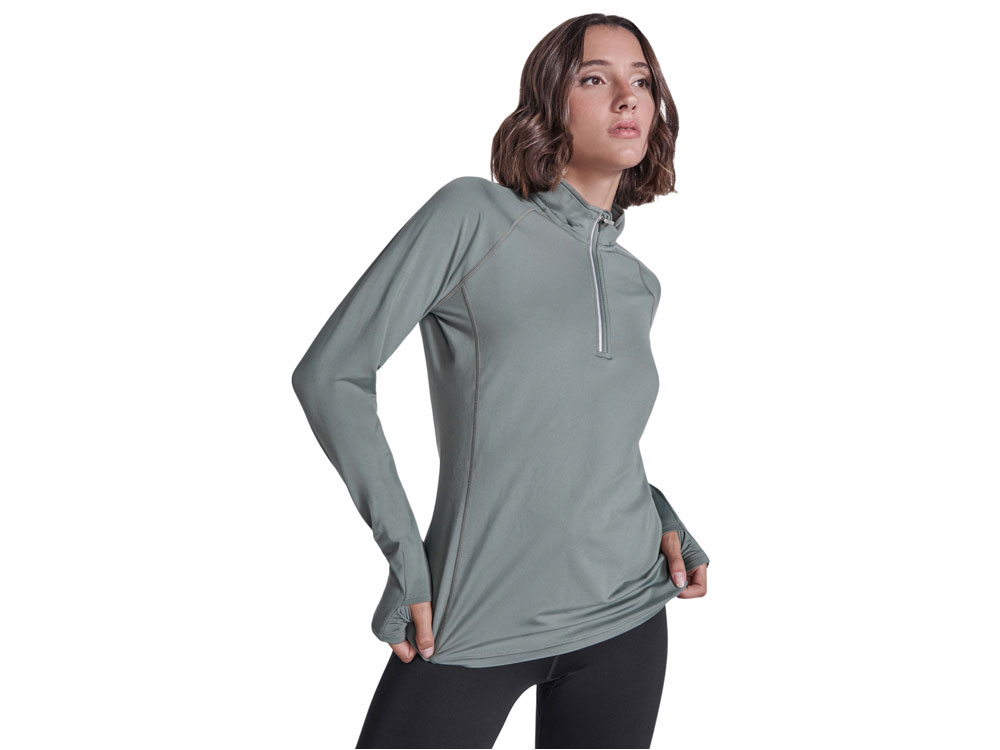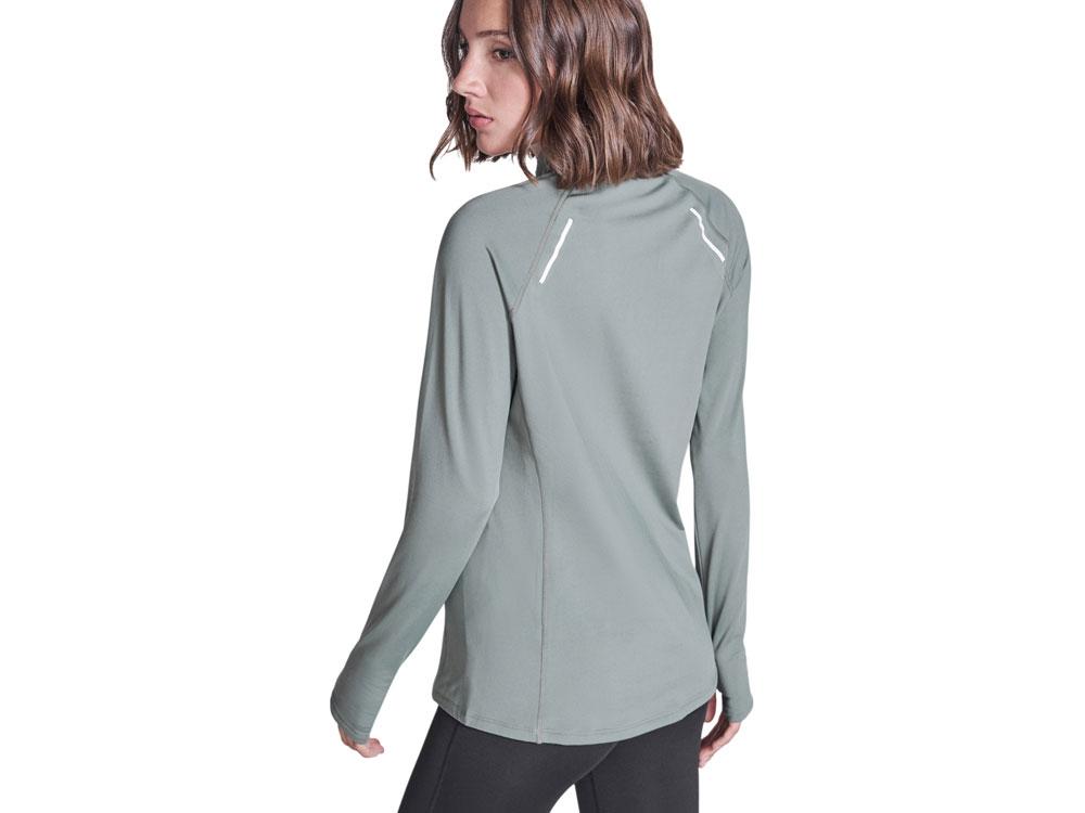 Лонгслив с рукавом реглан из технологического плотна, ворот на молнии со светоотражающей деталью. Усиленные швы. Манжеты с отверстием для большого пальца. Светоотражающая деталь на спинке. Низ спинки длиннее переда. Изнанка с теплым начесом.