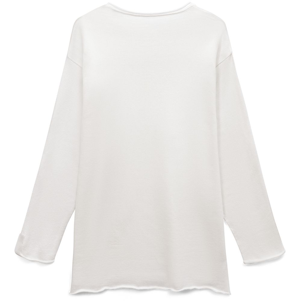 Лонгслив Fuori средней плотности с широким воротом, спущенной линией плеча и свободно подворачивающимися краями по низу, на рукавах и вороте, которые добавляют модели еще большей расслабленности. Прозрачная бирка с логотипом бренда на рукаве не нарушает минималистичности образа.
