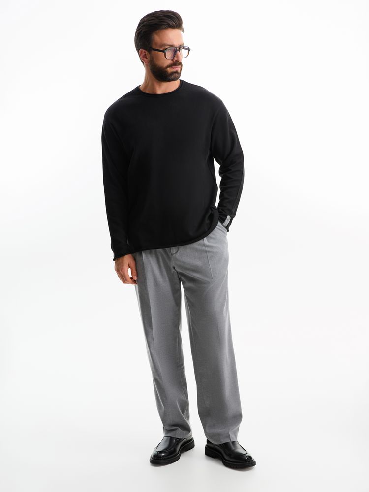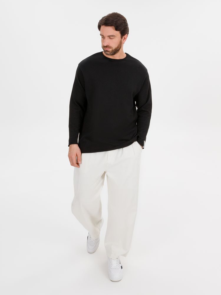 Лонгслив Fuori средней плотности с широким воротом, спущенной линией плеча и свободно подворачивающимися краями по низу, на рукавах и вороте, которые добавляют модели еще большей расслабленности. Прозрачная бирка с логотипом бренда на рукаве не нарушает минималистичности образа.
