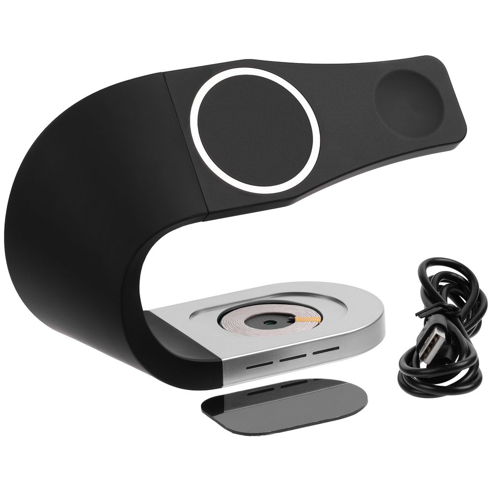 Смартфоны iPhone 12/13/14/15/16 удерживаются встроенными в их корпус магнитами. Прочие смартфоны необходимо дополнить магнитным стикером-адаптером для надежного удержания на зарядной области. Толстый защитный чехол может мешать удержанию смартфона на станции. Индикатор начинает светиться синим только в конце зарядки смартфона. Заряд часов или наушников можно контролировать по их индикаторам заряда.