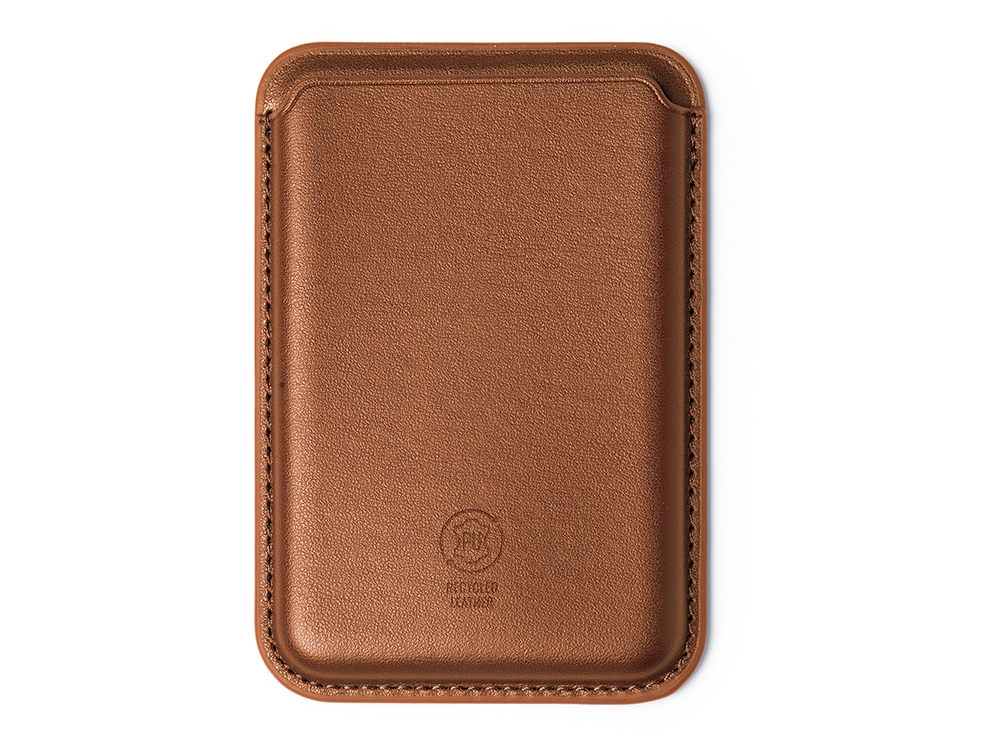 Картхолдер вмещает в себя 1-2 карты. На лицевой стороне изображен знак переработанного полиуретана, из которого сделан картхолдер, а с внутренней стороны имеется отверстие для быстрого доступа к картам.