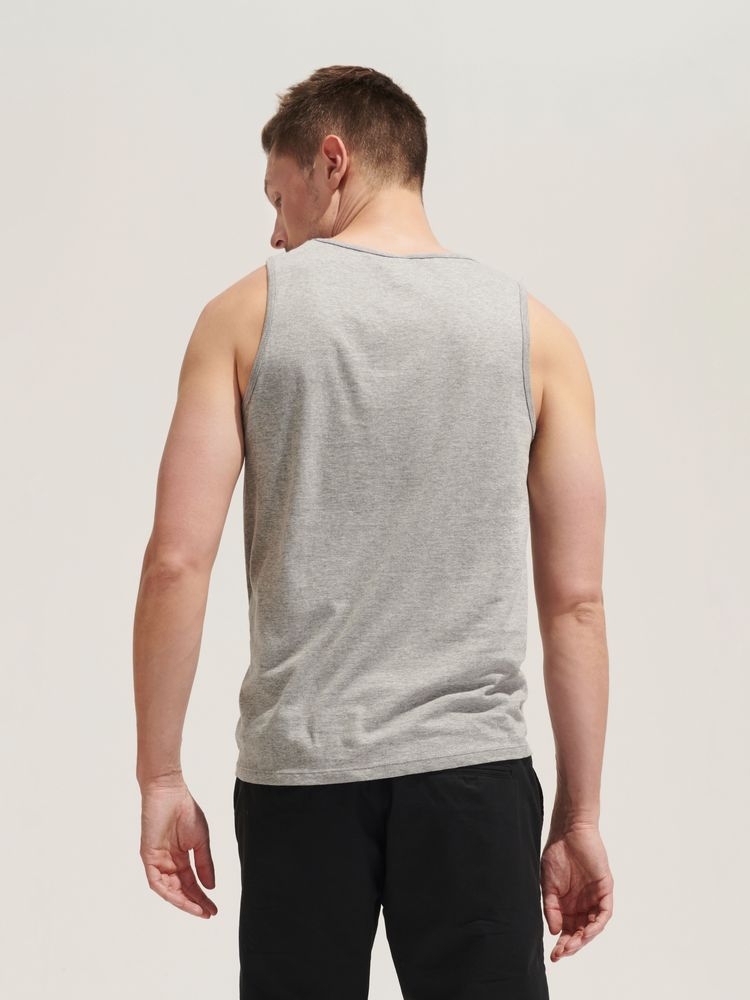 Кроеная мужская майка из полугребенного хлопка. Горловина и проймы обработаны укрепляющей резинкой.
