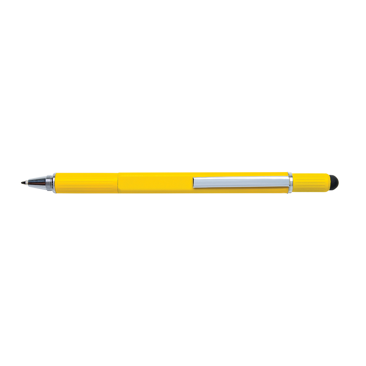 Многофункциональная ручка совмещает в себе линейку длиной 7 см, спиртовой уровень, отвертку, стилус и синюю шариковую ручку, чернил в стержне которой хватит на линию длиной до 400 м. Корпус ручки изготовлен из высококачественной латуни и дополнен удобным алюминиевым клипом. , ширина 1,3 см., высота 15 см., диаметр 0 см.