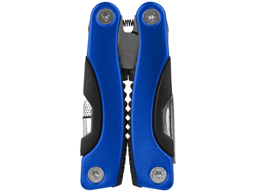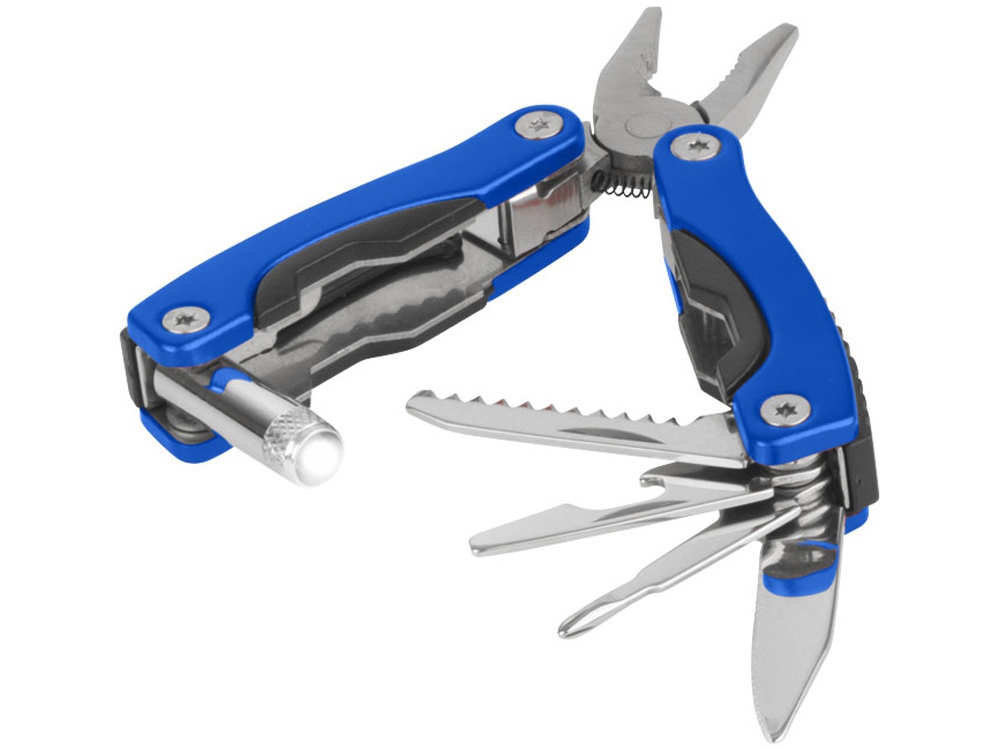 Мультиинструмент с диодным фонариком. В комплекте нейлоновый чехол с петелькой для крепления и застежкой на липучке. Батарейки в комплекте.