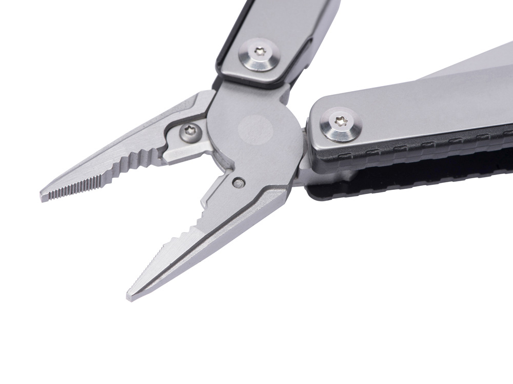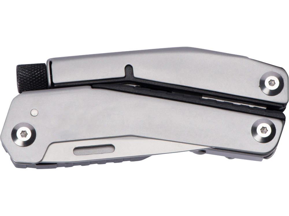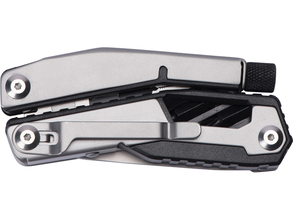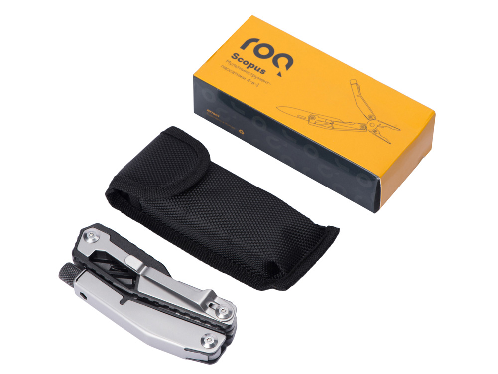 Складной нож Scopus от roq выполнен в ассиметричном необычном дизайне, в его составе — среднего размера нож, пассатижи, плоская и крестовая отвертки (биты), шестигранный ключ 5 мм.
