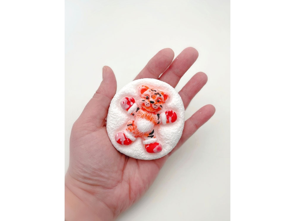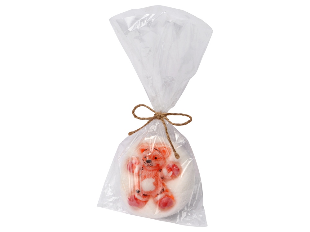 Превосходное мыло ручной работы в форме веселого тигренка на снегу. Каждый тигренок по-своему уникален. Поставляется в прозрачном пакете с бечевкой, который можно забрендировать стикером с дизайном заказчика.
