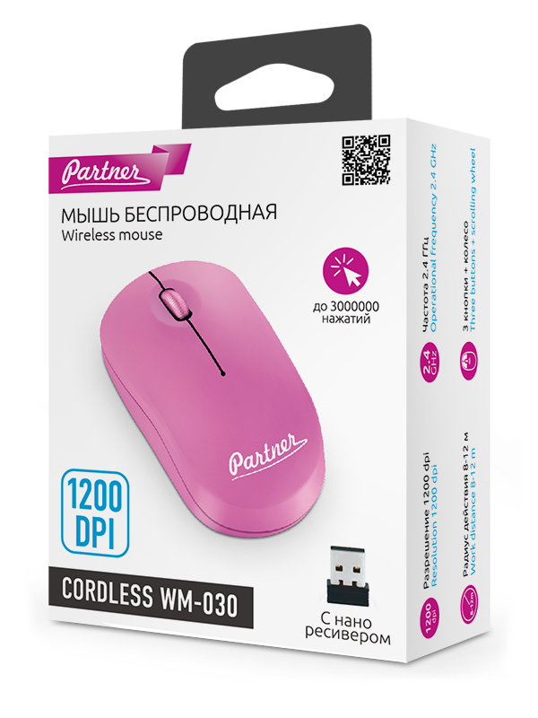Мышь беспроводная Partner Cordless WM-030, розовый можно заказать в нашей компании по самой доступной цене от 349 рублей.