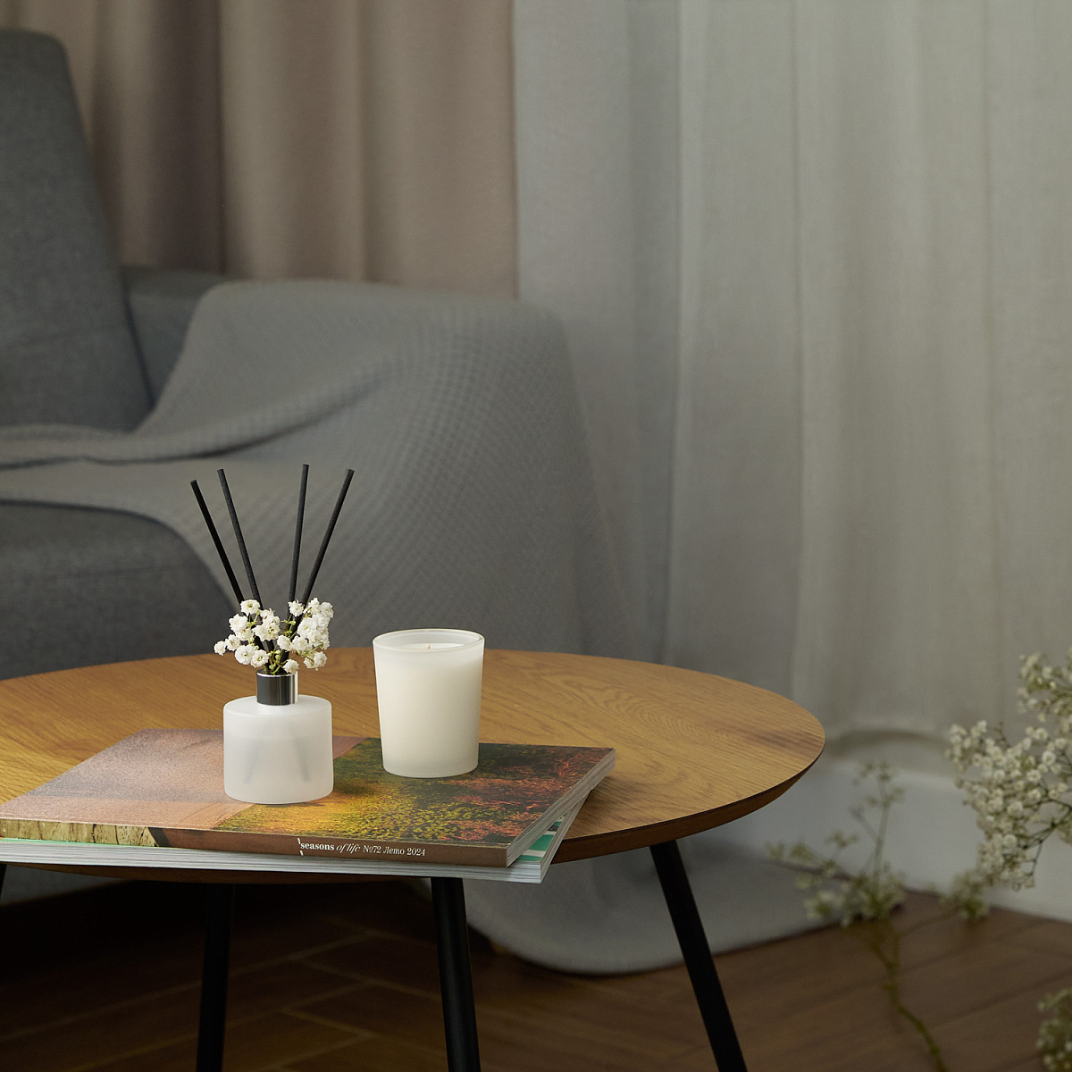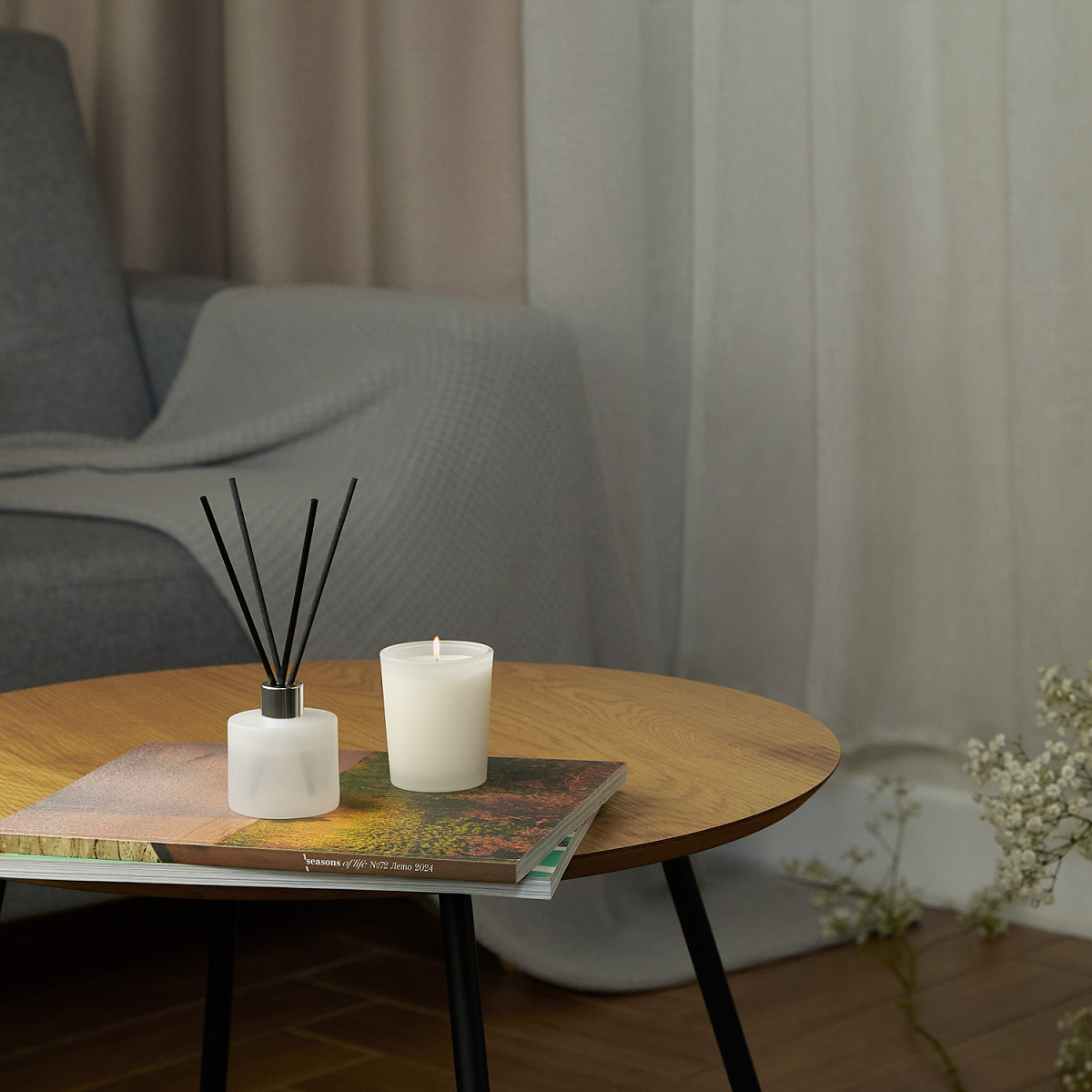 Состав: 5% ароматической композиции, соевый воск для длительного горения и чистой аромаотдачи, отсутствие вредных веществ и копоти.