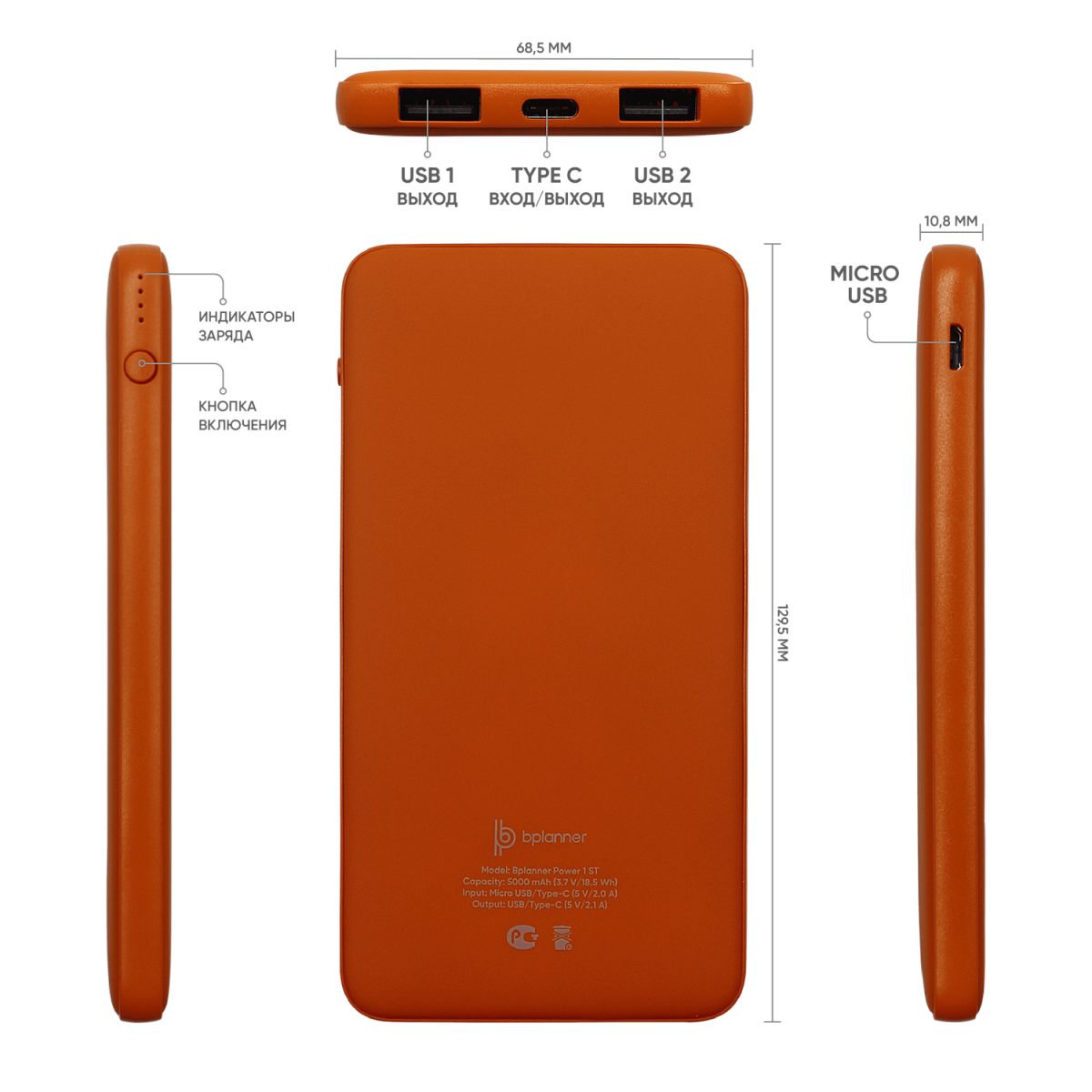 1. Внешний аккумулятор Bplanner Power – функциональное зарядное устройство, которое представлено в различных модификациях и может одновременно заряжать 2 гаджета. Аккумулятор оснащен индикатором заряда и входом Type-С. В комплекте идет кабель 3 в 1 и инструкция.
