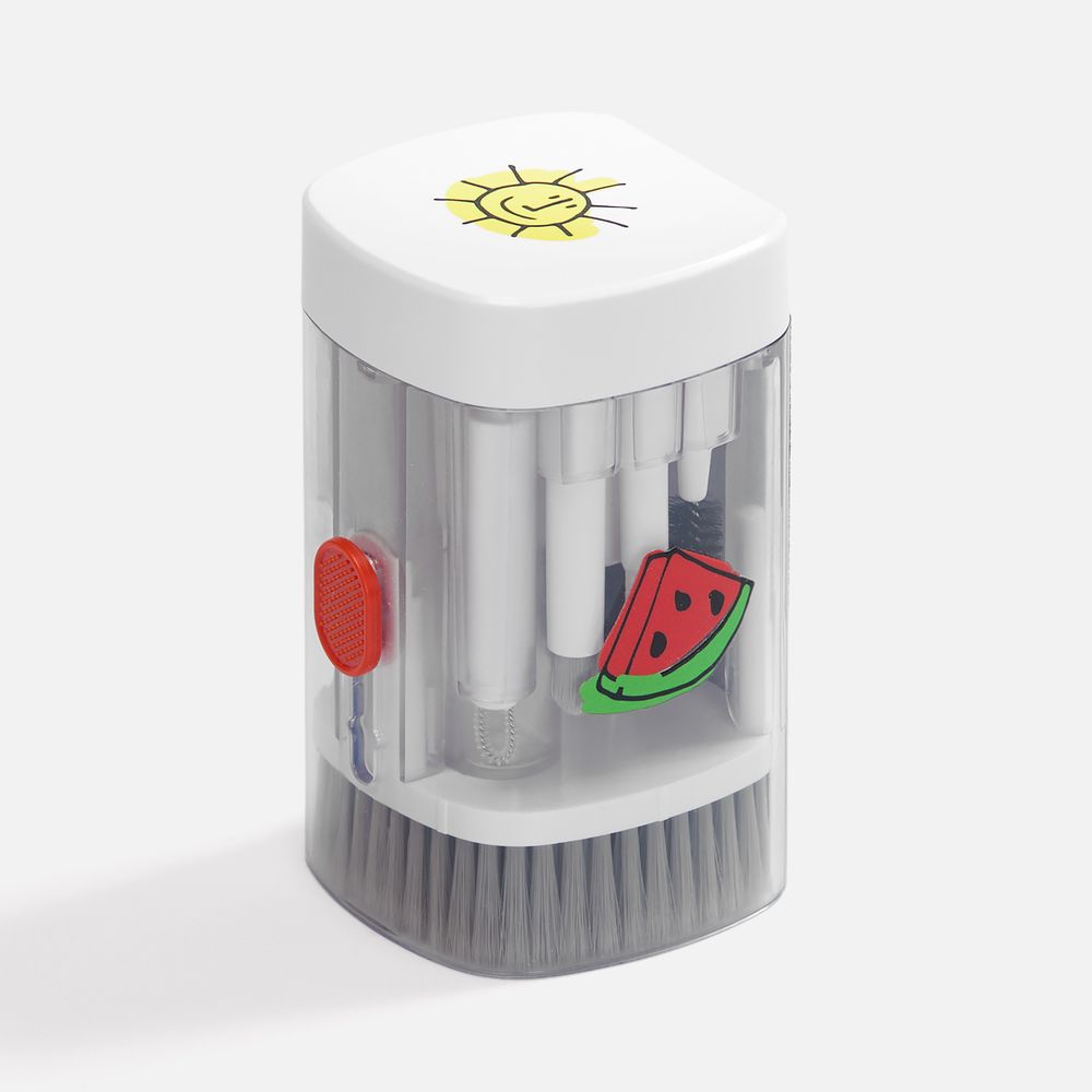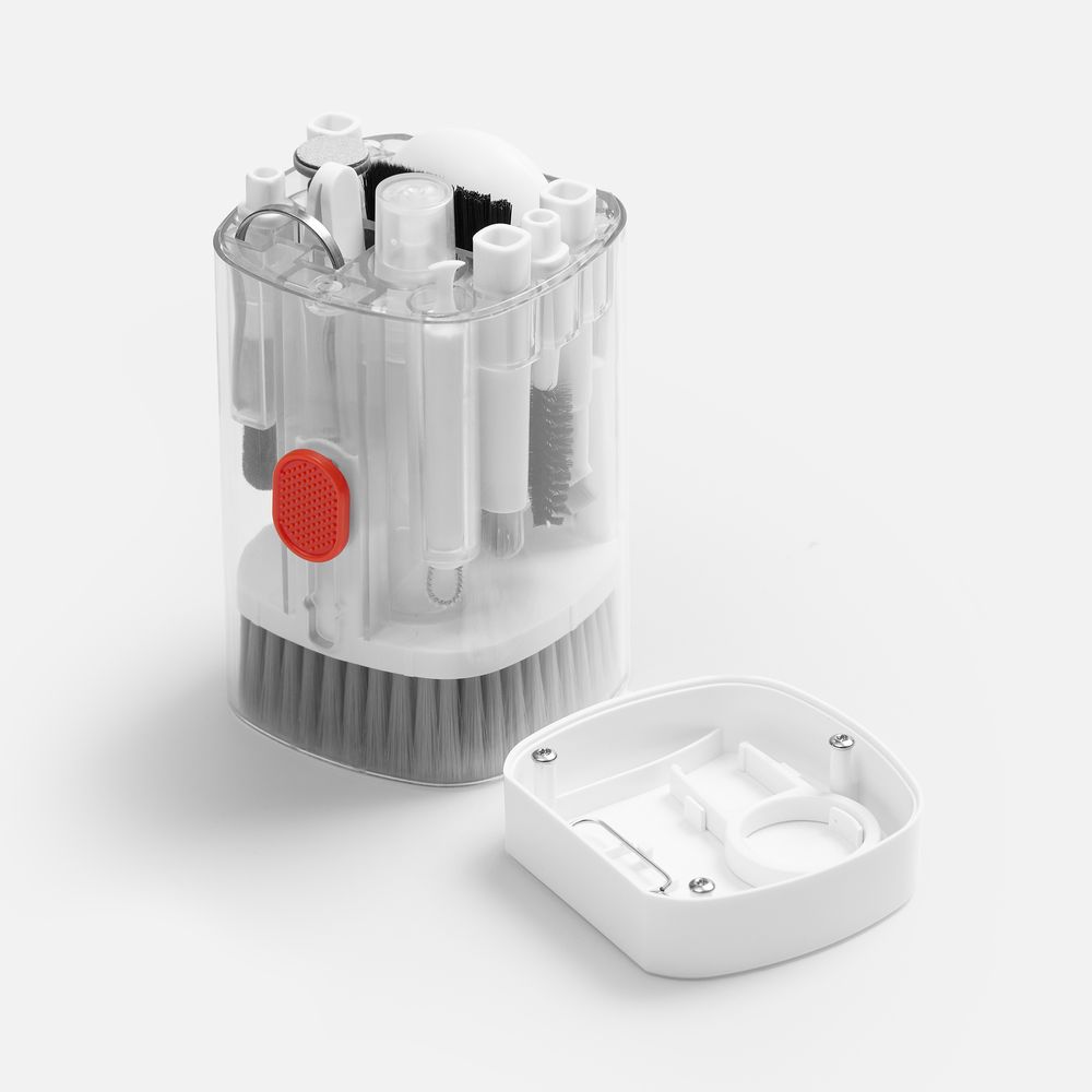 - В комплекте: большая щетка, салфетка для ухода за дисплеем, контейнер для жидкости, пластиковый пинцет, щетка с жесткой щетиной, щетка с мягкой щетиной, чистящее перо со щеткой для наушников, насадка для чистки кейса от наушников, ершик для чистки кейса от наушников, щетка с короткой щетиной, щетка с наклонной щетиной, двусторонняя насадка для чистки разъемов зарядки, двусторонняя насадка для чистки камеры, инструмент для продувки, дуговой пинцет, ключ для отсека SIM-карты, инструмент для извлечения поврежденных ключей