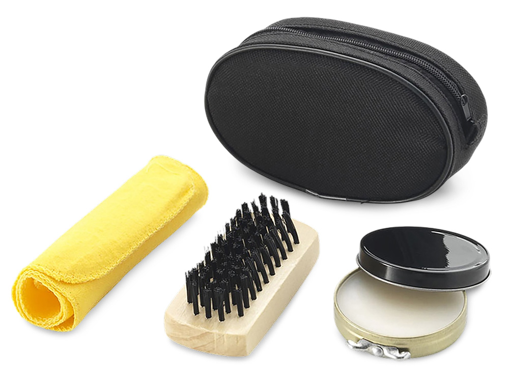 Набор для ухода за обувью - отличный подарок для тех, кто часто ездит в деловые поездки. В наборе такие необходимые аксессуары, как бесцветный крем для обуви, щетка, салфетка для полировки. Компактно упакованы в нетканый чехол, на который можно нанести изображение.