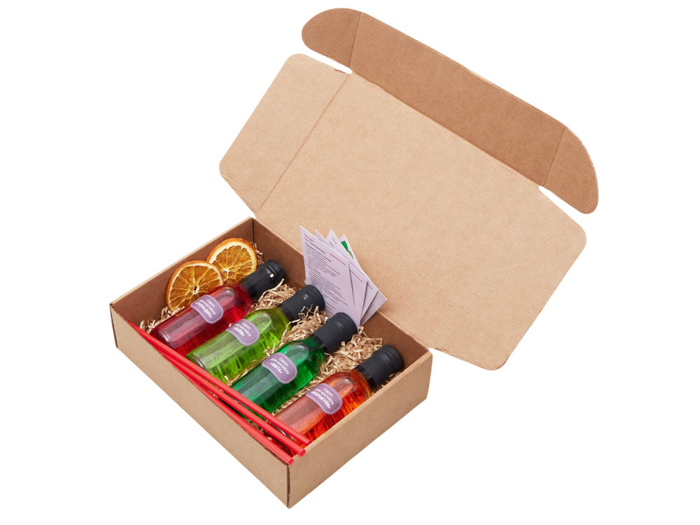 Подарочный набор, который превращает любой вечер в маленький праздник. В стильной упаковке собраны: - 4 бутылочки сиропов по 100 мл с яркими вкусами: Лайм, Маракуйя, Мята, Гренадин – классика коктейльного бармена. - 6 трубочек для коктейлей. - Подобранные специи для изящного декора напитков. - 4 карточки с рецептами – готовые идеи для быстрого приготовления коктейлей. Такой набор – универсальный и статусный подарок для партнёров, клиентов или сотрудников. Он подчеркнёт внимание к деталям, создаст атмосферу гостеприимства и станет стильным акцентом любого корпоративного мероприятия. В комплект входит: - бутылки с сиропом для коктейлей 100 мл: Лайм, Маракуйя, Мята, Гренадин - трубочки для коктейля 6 шт. - специи для декора коктейля - карточки с рецептами 4 шт.