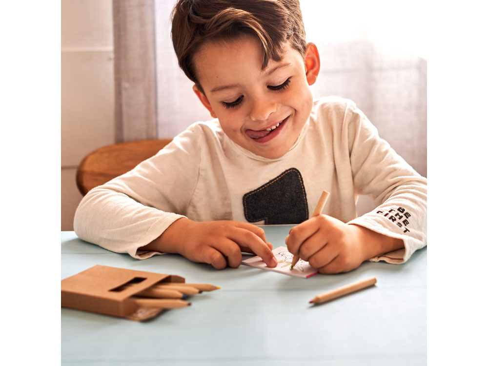 Набор для рисования для детей. В комплекте блокнот на 20 листов с рисунками, 6 цветных карандашей и точилка.