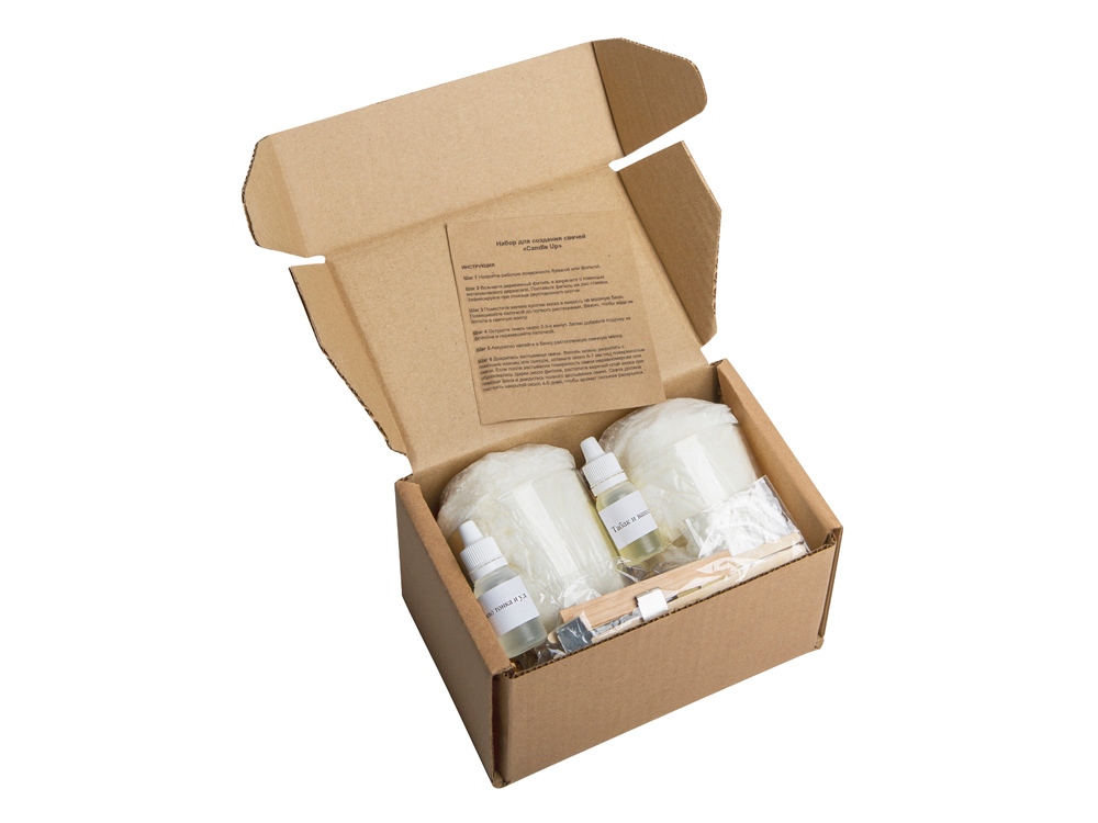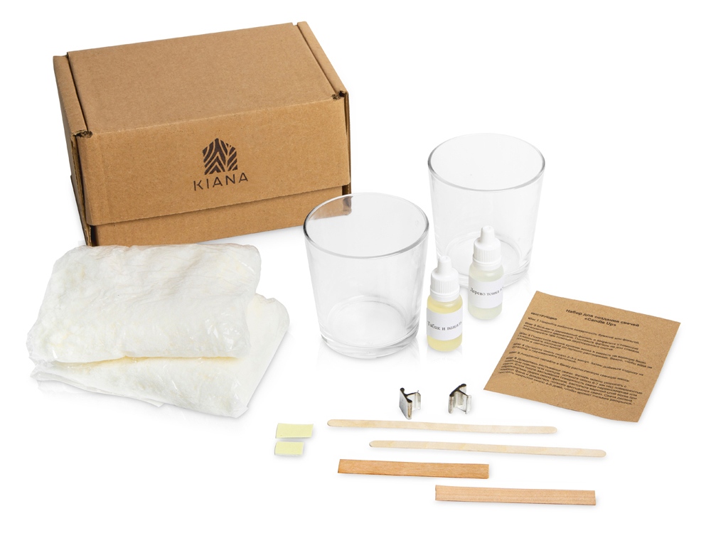 Комплектность: свечная масса, 2 стеклянных стакана, 2 фитиля деревянных, 2 держателя для фитиля, 2 вида отдушки, инструкция