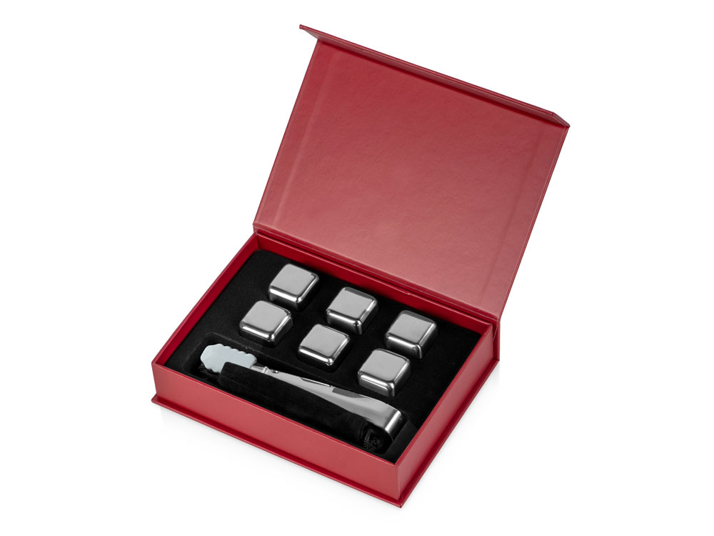 Набор для виски Skye состоит из шести охлаждающих камней из нержавеющей стали, бархатистого мешочка и удобных щипцов. Сет упакован в качественную коробку с магнитной крышкой винного цвета, а сверху надевается шубер с полиграфией, который можно заменить на какой-либо другой.