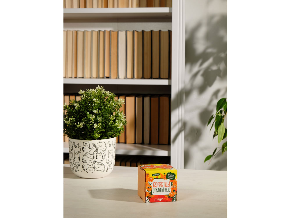 Комплектность: деревянное кашпо из фанеры, бумажный стаканчик, грунт, семена, вермикулит, иконка с изображением растения, шубер