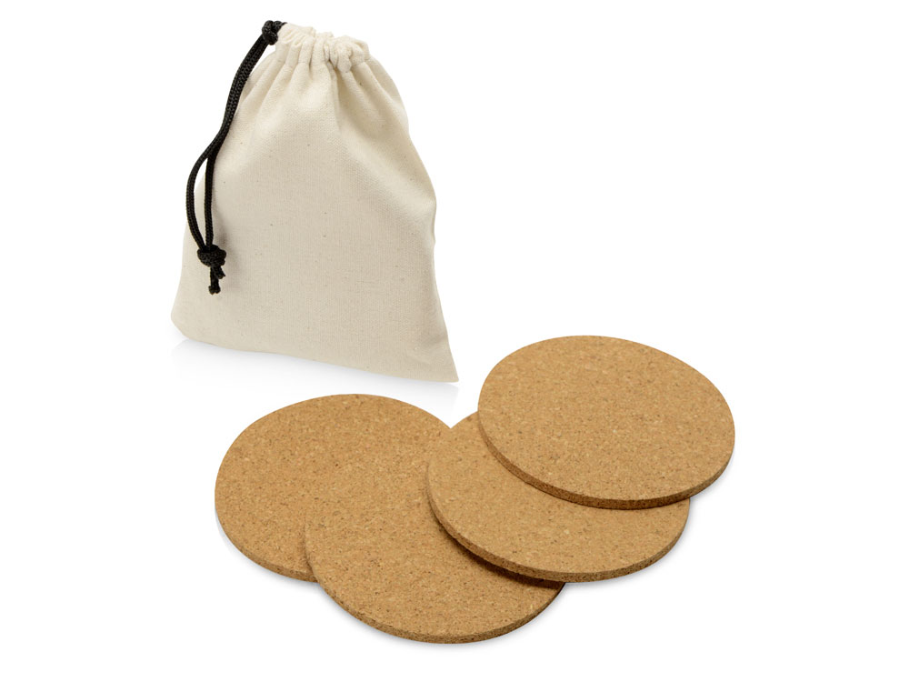 Костеры из пробки подойдут для самой разной посуды: большой диаметр и универсальная форма делают его совместимым с бокалами, стаканами и кружками различных объемов. В набор входит 4 костера, упакованных в хлопковый мешочек на шнурке. И подставки, и упаковка набора выполнены из натуральных материалов;