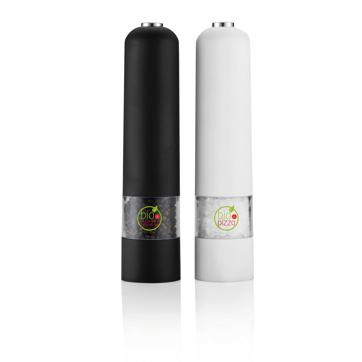 В наборе белая и черная автоматические мельницы для соли