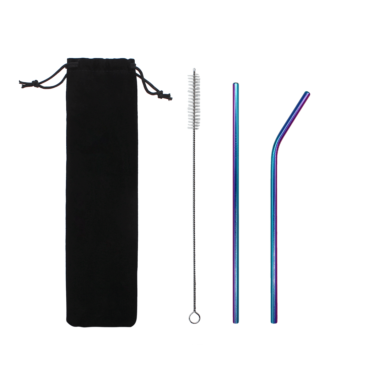Трубочки изготовлены из пищевой стали. В набор входит: прямая и изогнутая трубочки, а также ершик для удобной чистки.