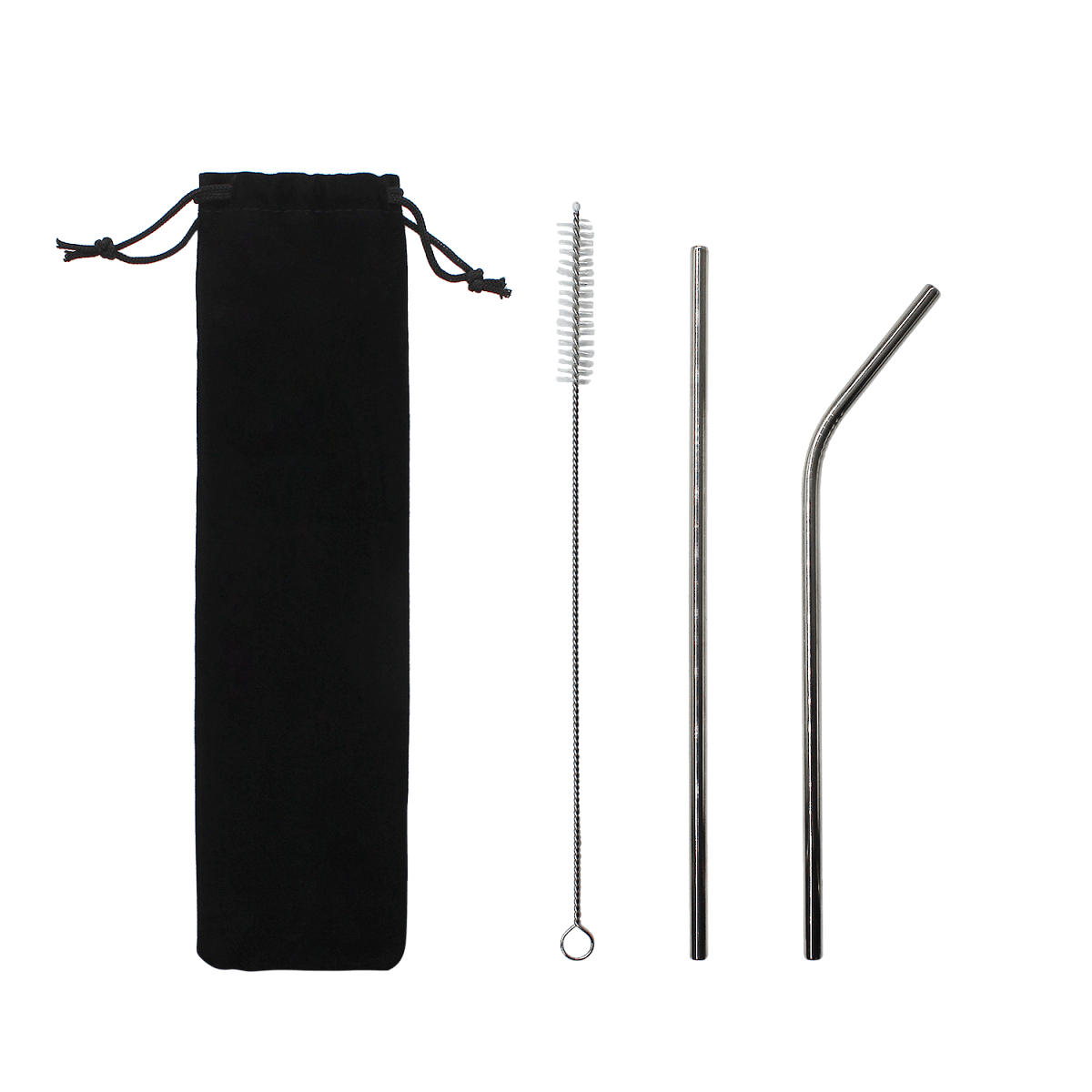 Трубочки изготовлены из пищевой стали. В набор входит: прямая и изогнутая трубочки, а также ершик для удобной чистки.