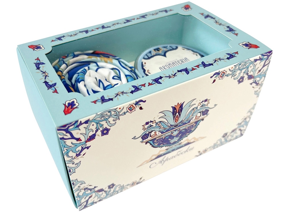 Набор: платок Арабески и свеча Загадка Востока можно заказать в нашей компании по самой доступной цене от 3 500 рублей.