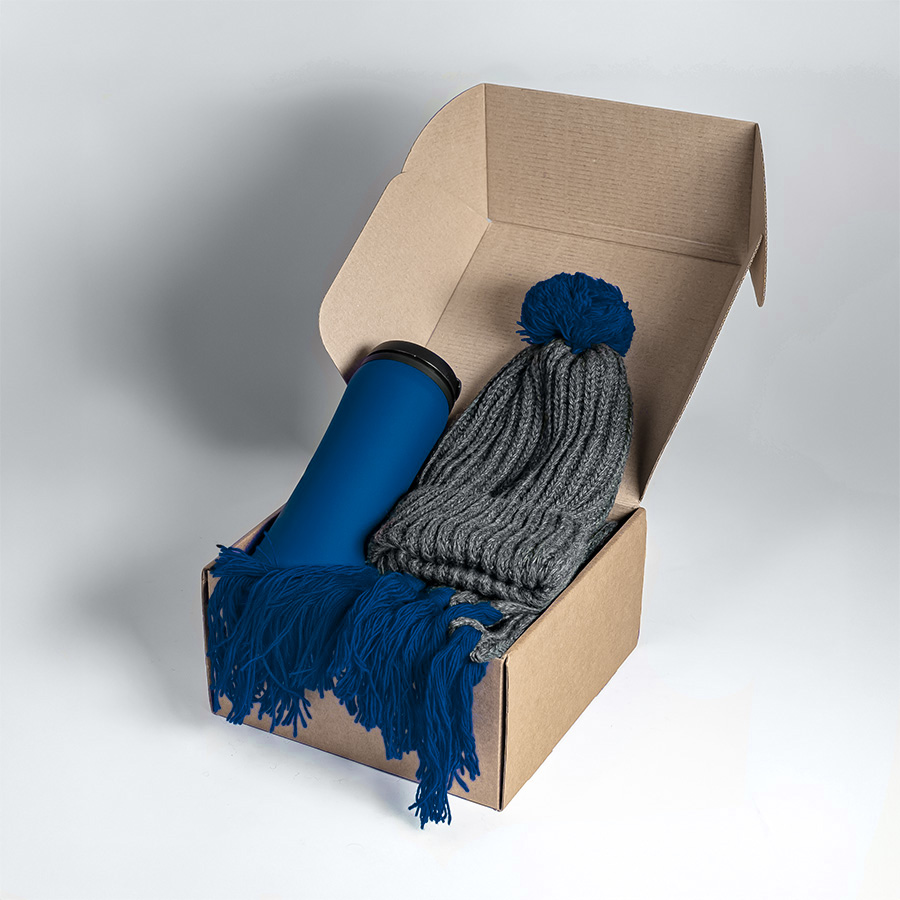 Набор подарочный COLD NIGHT: шарф и шапка, термокружка; синий можно заказать в нашей компании по самой доступной цене от 3 640 рублей.