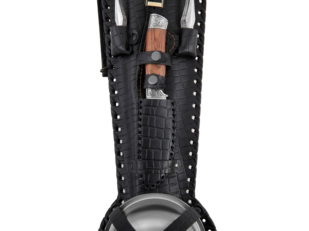 Комплектность: тарелка- 6шт, стопка- 6шт, нож в чехле, ложка- 6шт, вилка- 6шт, топор, ножки для мангала- 2шт, шампур- 6шт