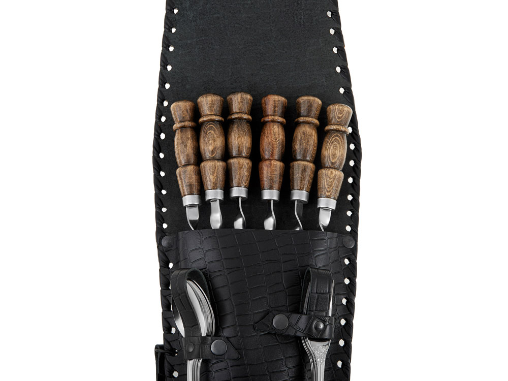 Набор для пикника в кожаном чехле ручной работы.