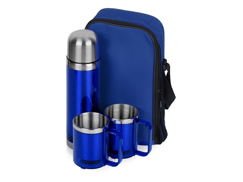 Набор состоит из термоса на 550 мл и двух кружек на 220 мл, которые складываются в удобную дорожную сумку с термоизоляцией. Термос поможет сохранить ваши напитки теплыми в течение 4 часов. Набор придется весьма кстати во время длительных прогулок, походов и даже отдыха на даче.