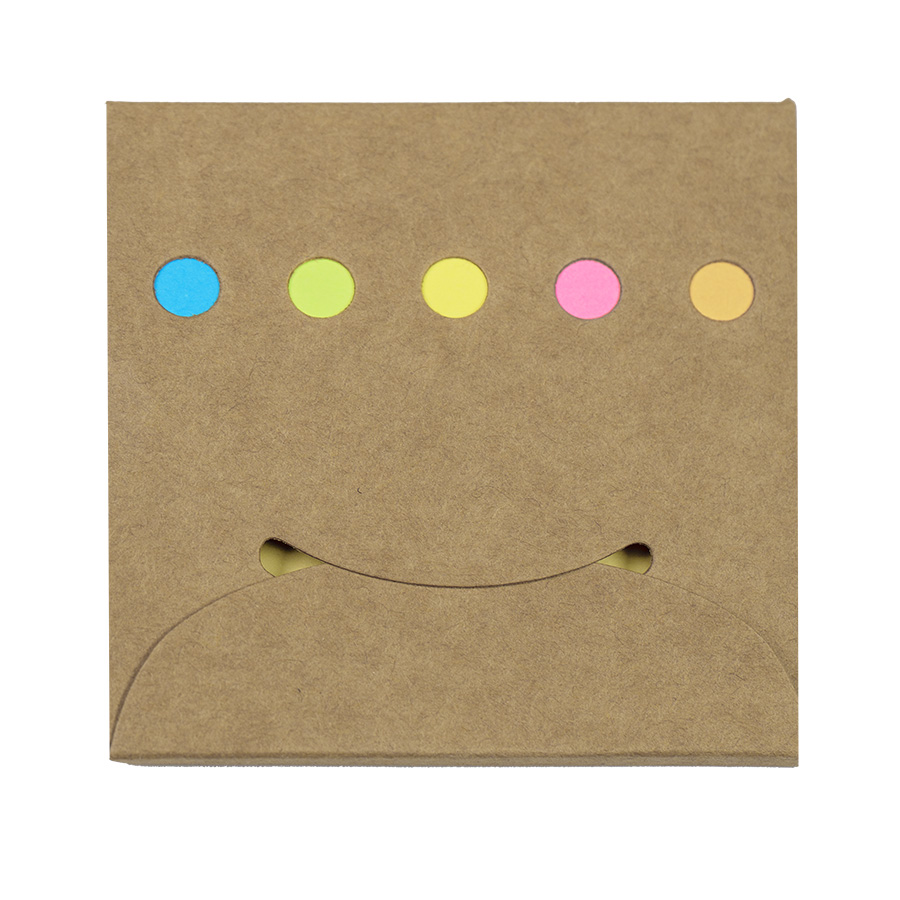 Набор стикеров в крафтовой обложке. Размер 85х84х6 мм. 6 цветов. 20 стикеров каждого цвета с клеевым краем.