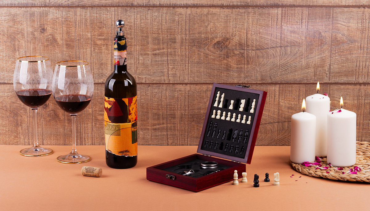 С набором из винных аксессуаров, в котором идут шахматы - вы сможете разнообразить свой досуг, приятно провести время с друзьями.