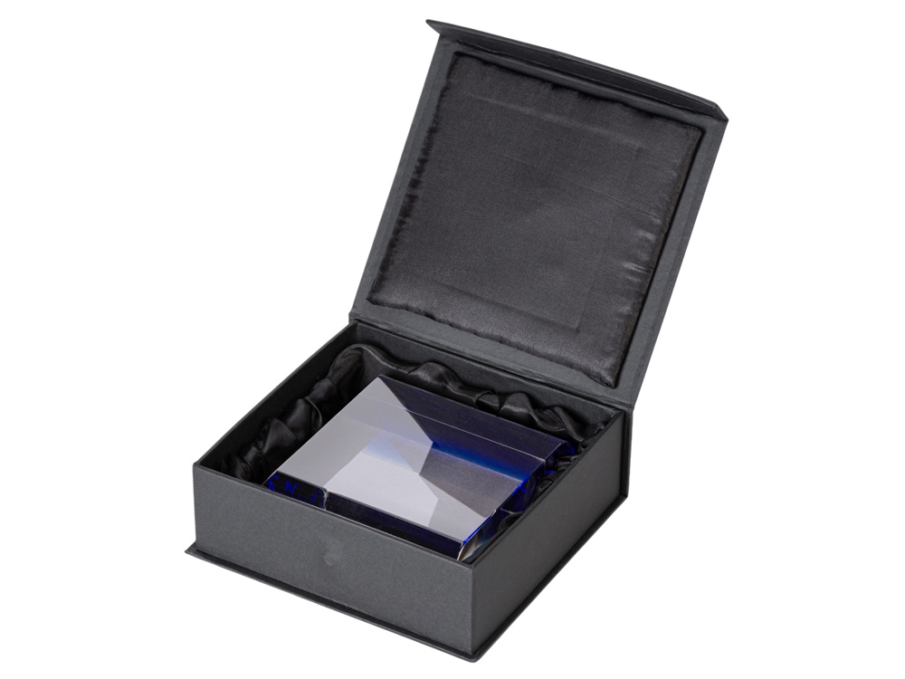 Награда выполнена из прозрачного стекла с синей полосой, которая дает красивые блики на всю поверхность награды. Станет отличным подарком для отличившихся сотрудников и партнеров компании.