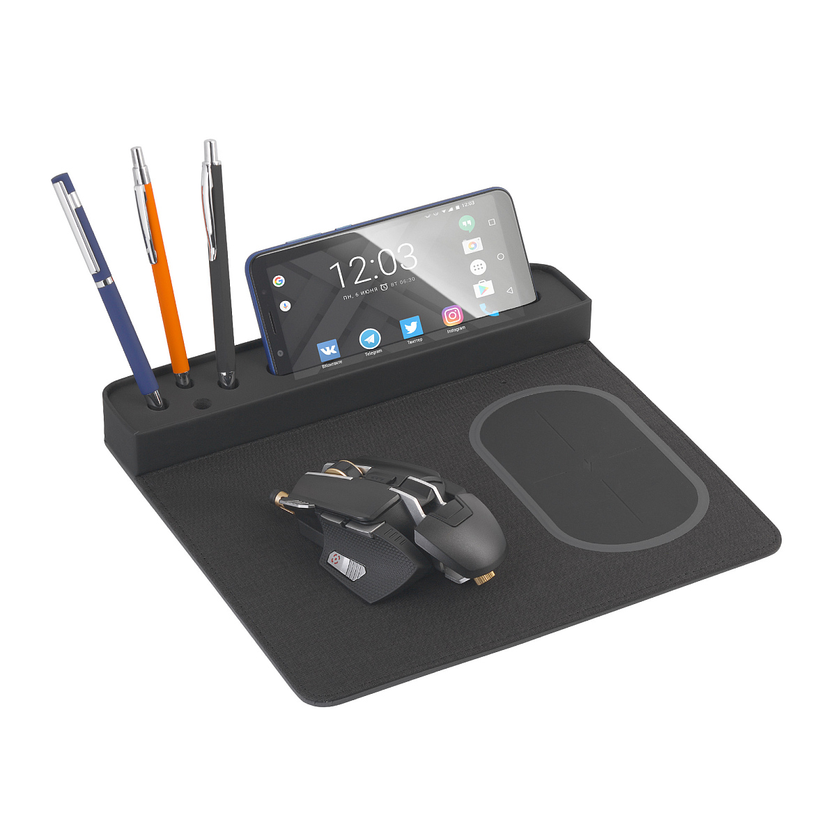 Настольная подставка с беспроводным зарядным устройством, черный можно заказать в нашей компании по самой доступной цене от 2 139 рублей.