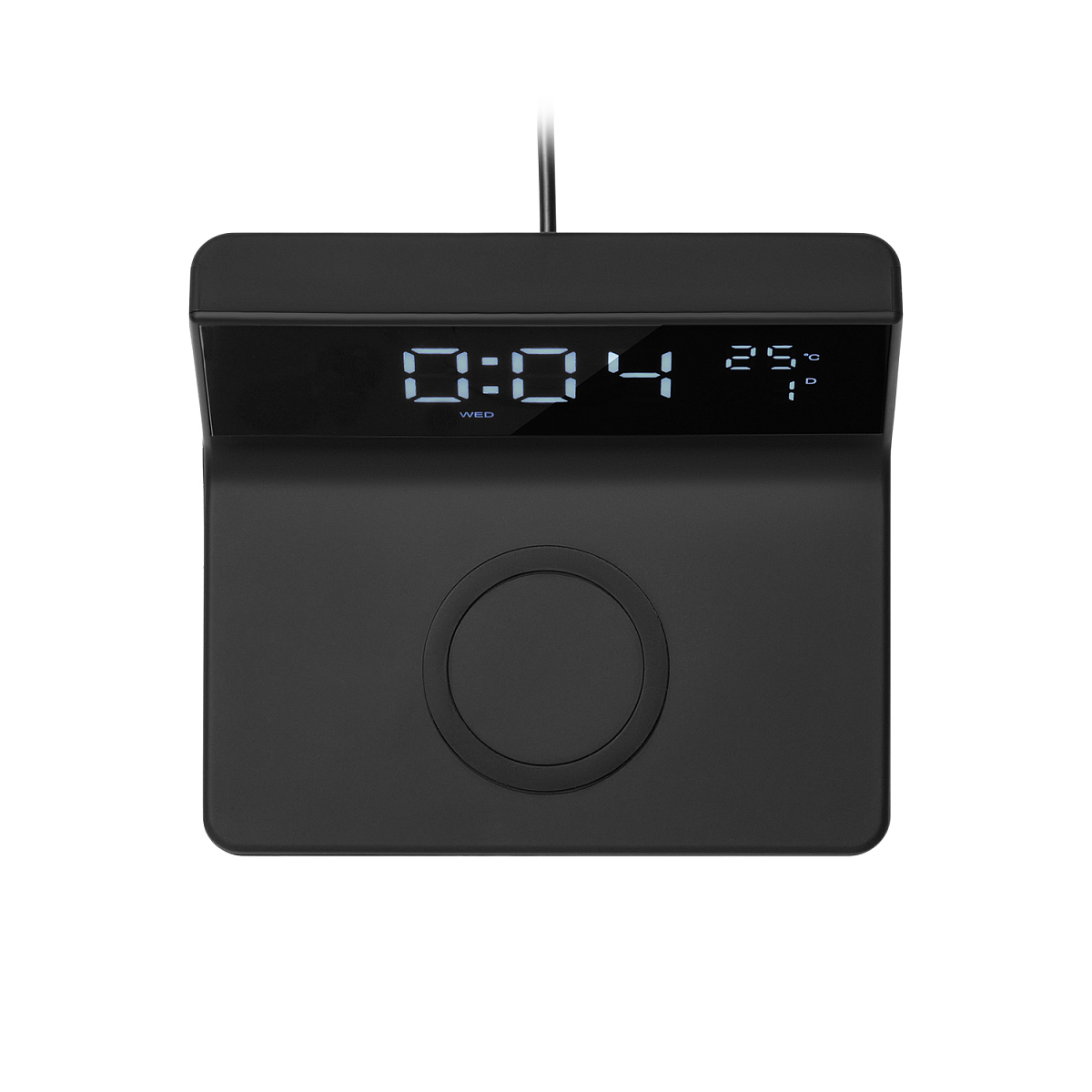Зарядная станция 15W с часами и будильником. Функция будильника (с возможностью настройки двух будильников и повтора), 12- или 24- формат времени. Четыре уровня яркости дисплея (максимальный, средний, минимум, выключен). Индикаторы зарядки, будильника, даты, температуры. Наличие USB-выхода для обеспечения проводной зарядки устройств. Функция энергосбережения - после отключения питания внутренняя батарейка-«таблетка» сохраняет настройки часов, и после повторного подключения к питанию часы не нужно переустанавливать.
