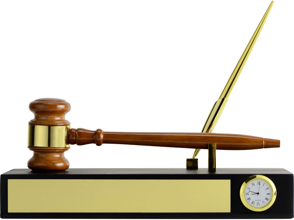Комплектность: подставка с часами 29,3 х 11,7 х 8 см, молоток d4,5 х 7,5 х 26,2 см, ручка шариковая d1 х 17,6 см, шильд 22,2 х 3,5 см