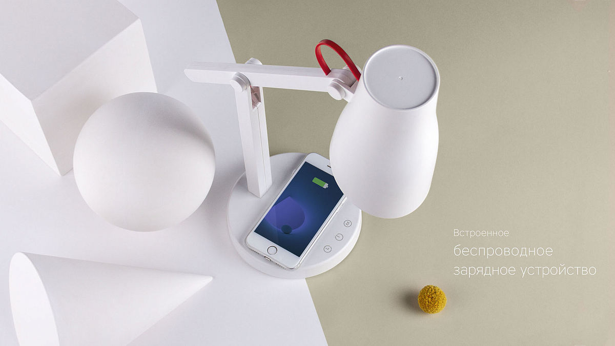 Особенности: до 30 000 часовэлегантный дизайн; сенсорное управление; встроенная беспроводная зарядка; функция таймера на 40 минут; три температуры света: холодный; нейтральный и теплый белый; функция диммера