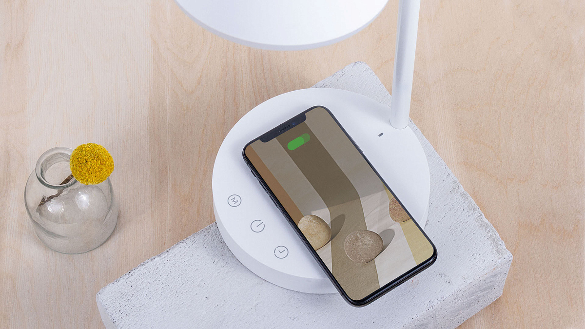 Особенности: элегантный дизайн; сенсорное управление; встроенная беспроводная зарядка; функция таймера на 40 минут; три температуры света: холодный; нейтральный и теплый белый; функция диммера