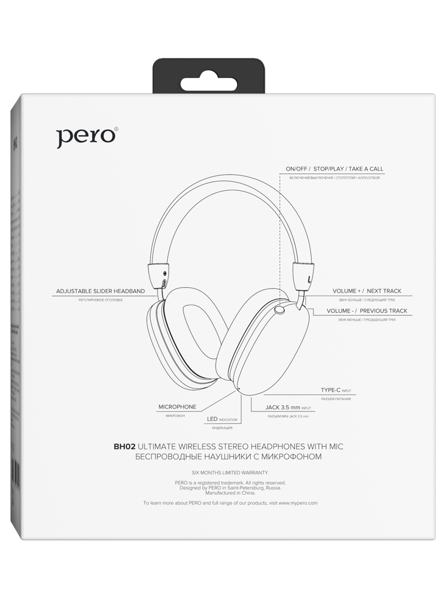 Наушники беспроводные PERO BH02, черный можно заказать в нашей компании по самой доступной цене от 2 990 рублей.
