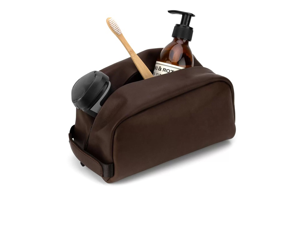 Косметичка, она же Dop Kit, предназначена для хранения и переноски всяких дорожных принадлежностей, предметов гигиены, инструментов или каких-нибудь зарядок для гаджетов. Косметичка изготовлена целиком из натуральной кожи и закрывается на молнию.