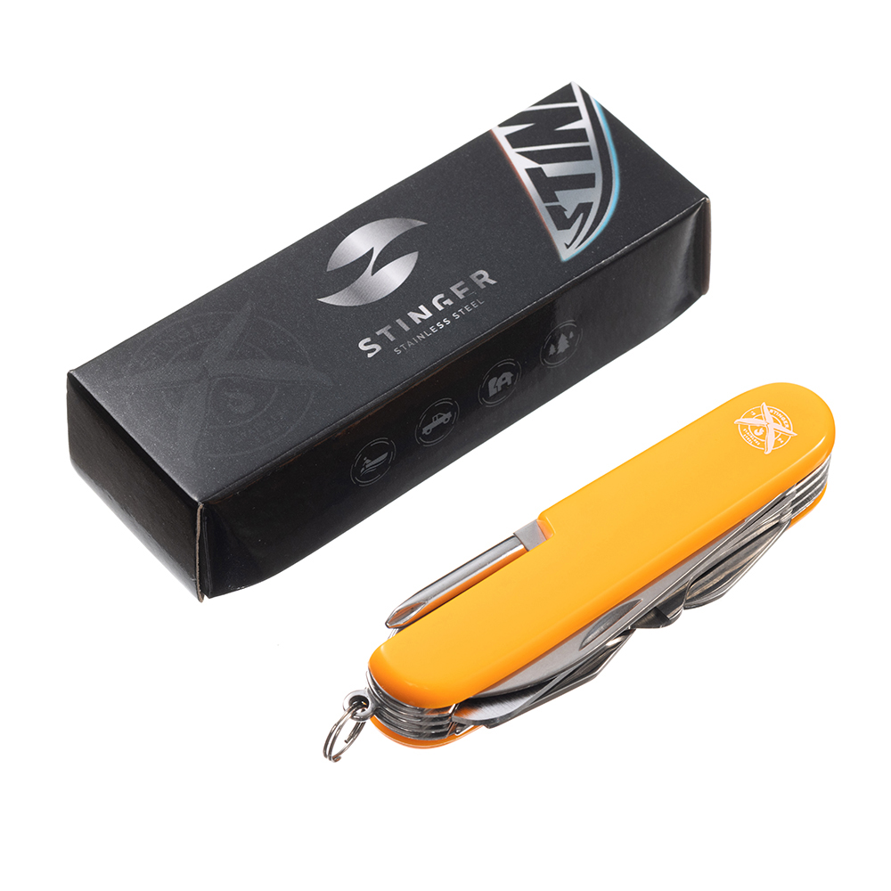 Нож перочинный Stinger, 89 мм, 15 функций, материал рукояти: АБС-пластик (оранжевый) можно заказать в нашей компании по самой доступной цене от 655 рублей.