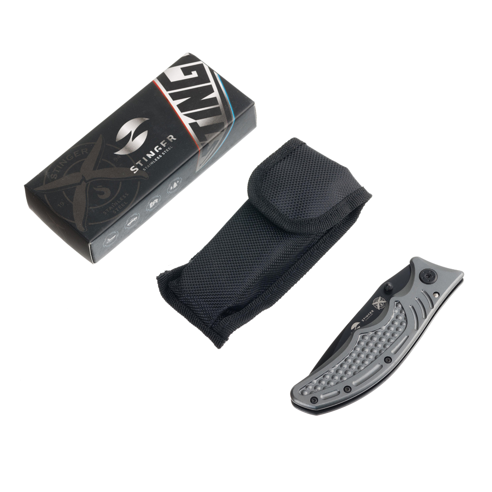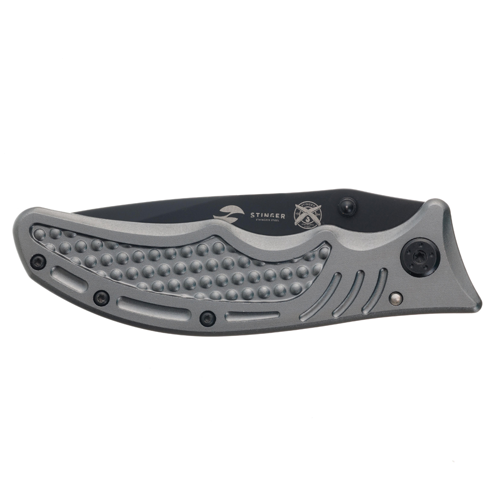 Нож складной Stinger, 90 мм, (чёрный), материал рукояти: сталь/алюминий (серо-синий) можно заказать в нашей компании по самой доступной цене от 1 310 рублей.