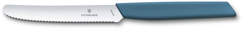 Нож столовый VICTORINOX Swiss Modern, волнистое лезвие 11 см с закруглённым кончиком, синий можно заказать в нашей компании по самой доступной цене от 1 550 рублей.