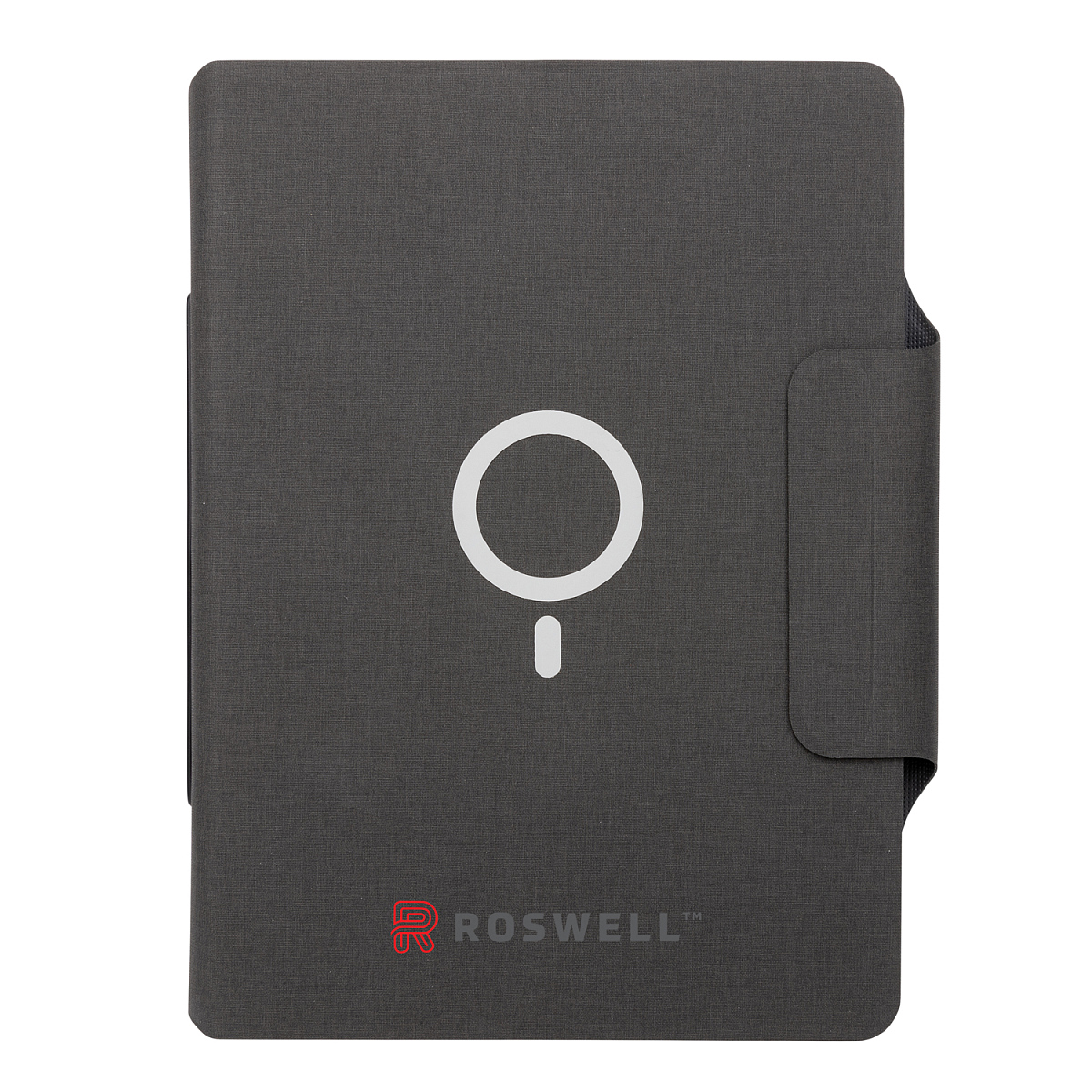 Стильный органайзер формата А4 оснащен аккумулятором на 8000 мАч и беспроводным магнитным зарядным устройством 10 Вт. Теперь заряжать смартфон стало намного быстрее и удобнее. Магниты позволят смартфону (iPhone 12 и новее) крепко и точно держаться на зарядном устройстве. Беспроводной модуль 10 Вт совместим со всеми устройствами, поддерживающими формат беспроводной зарядки QI. Вход 9 В / 2 A; беспроводной выход 9 В / 1.1 A; Type-C выход 9 В / 2 A. Органайзер содержит блокнот из 40 страниц в линейку. Плотность бумаги 80 г/м2. Органайзер снабжен карманом для смартфона и креплением для ручки. Внутри — 19 термостойких магнитов N52H для надежного крепления к смартфону. Зарегистрированный дизайн. Длина 31,5 см., ширина 24,5 см., высота 3 см., диаметр 0 см.