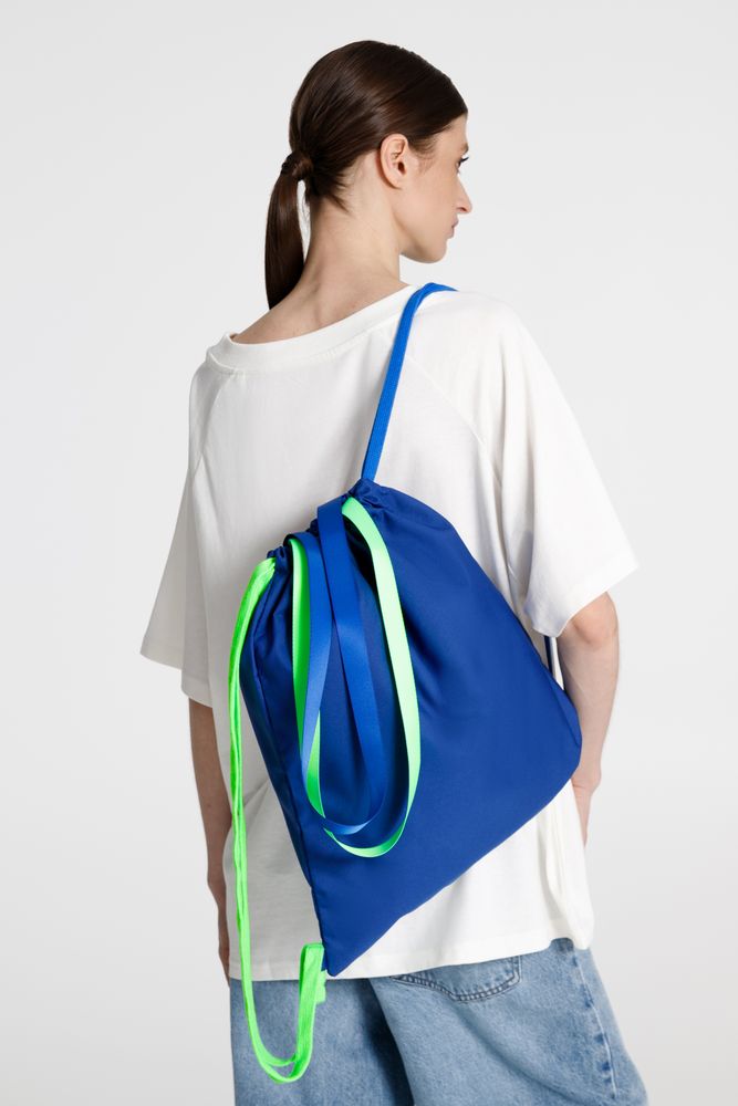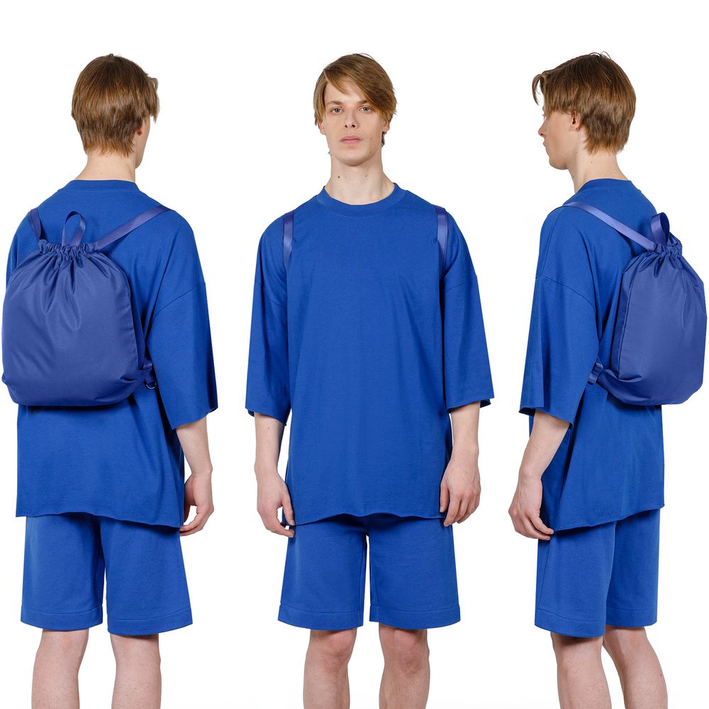 Прочный и вместительный трансформер — шопер и рюкзак на шнурках — разработан в рамках единой коллекции одежды и аксессуаров, поэтому легко комбинируется с ее элементами. Специально спроектированные лекала и технологии пошива открывают простор для любых вариантов кастомизации и нанесения изображений. На видимой части изделий нет лейблов с айдентикой бренда, а название бренда с уходника легко удалить.